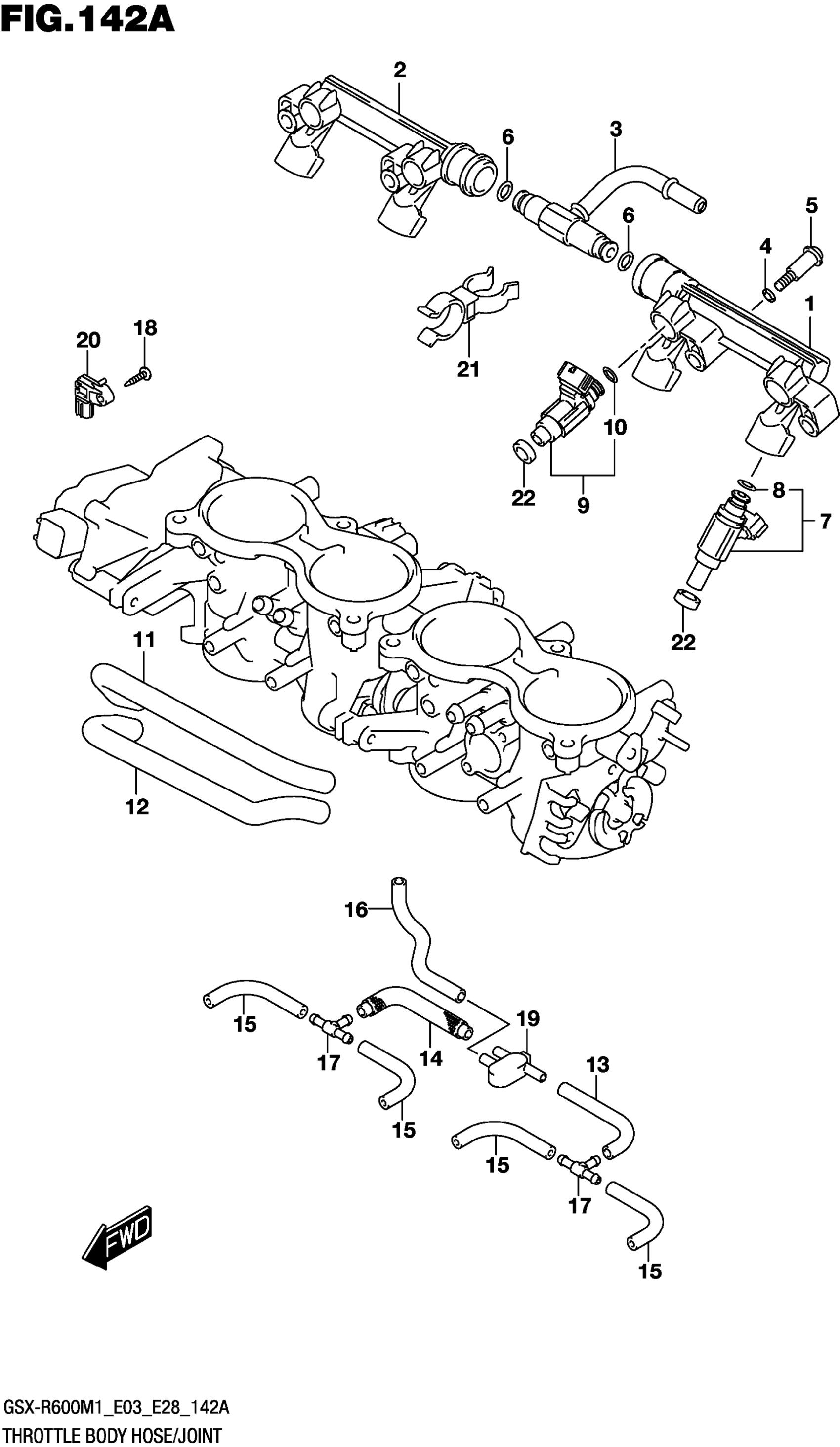Suzuki GSX-R600M1 (2021) THROTTLE BODY HOSE/JOINT ((E03,E28)) Diagram
