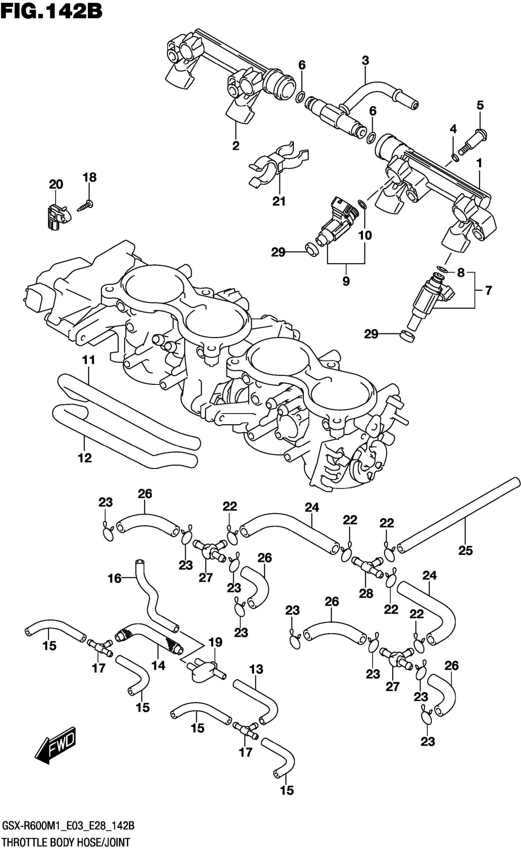 Suzuki GSX-R600M1 (2021) THROTTLE BODY HOSE/JOINT (E33) Diagram