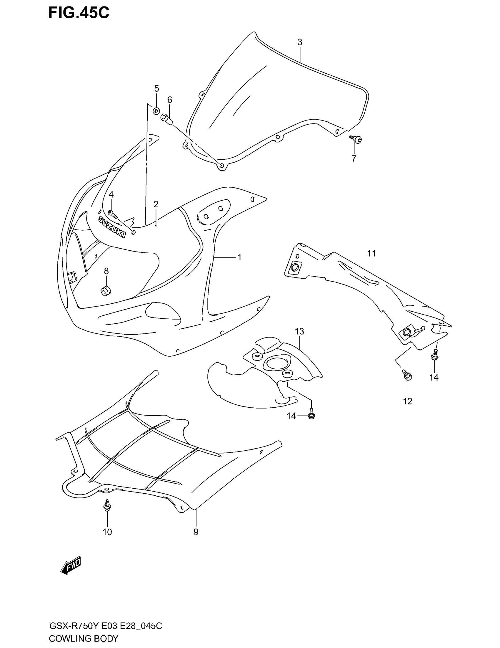 Suzuki GSX-R750 (2003) COWLING BODY (MODEL K3) Diagram
