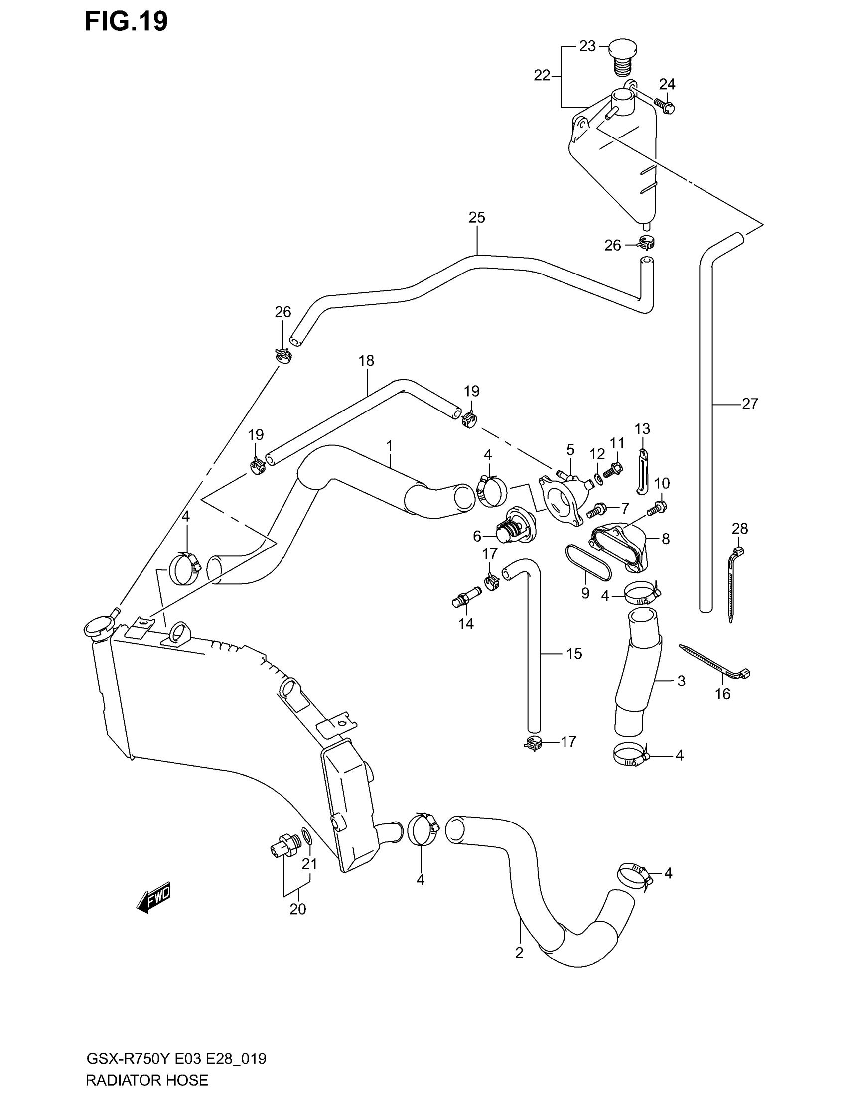 Suzuki GSX-R750 (2003) RADIATOR HOSE Diagram
