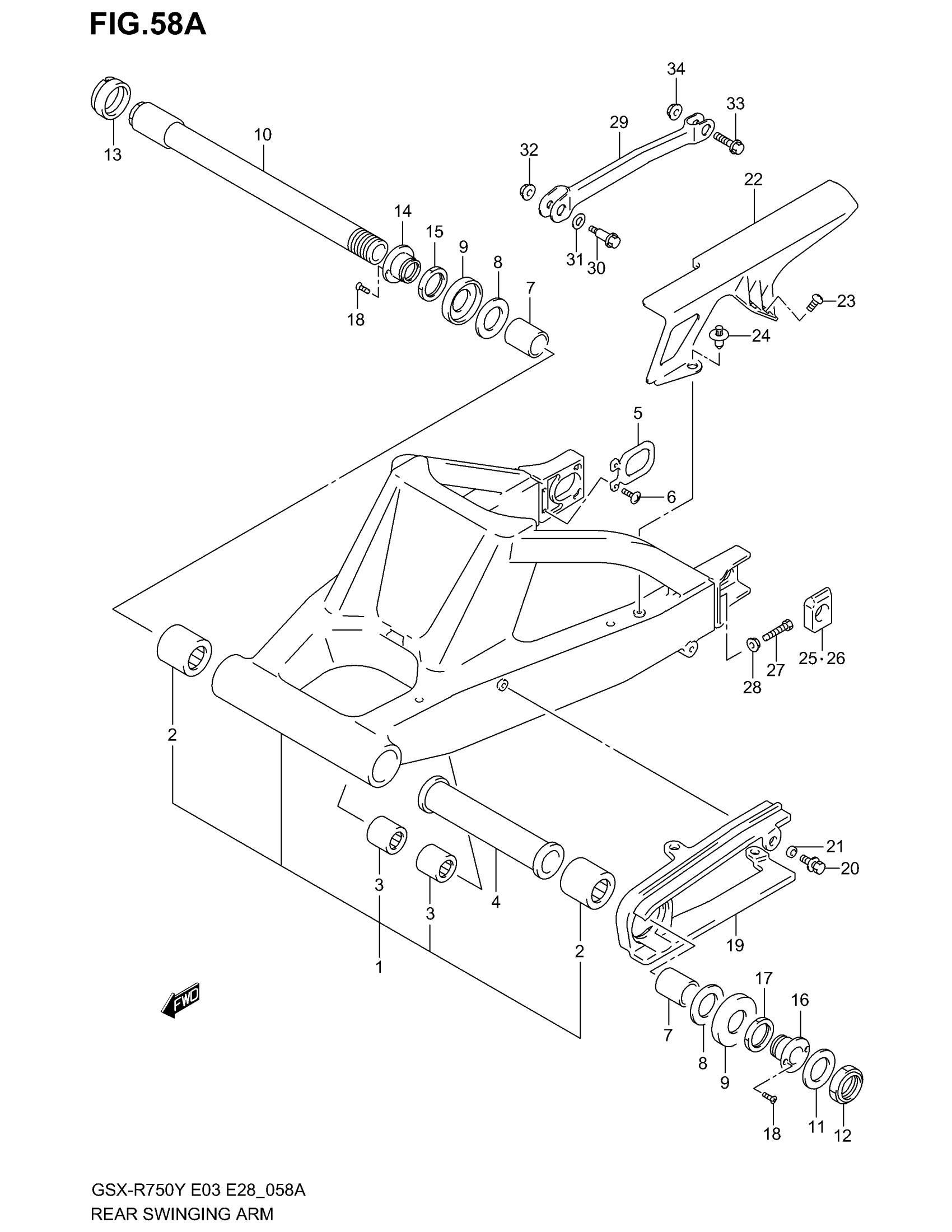 Suzuki GSX-R750 (2003) REAR SWINGING ARM (MODEL K2/K3) Diagram