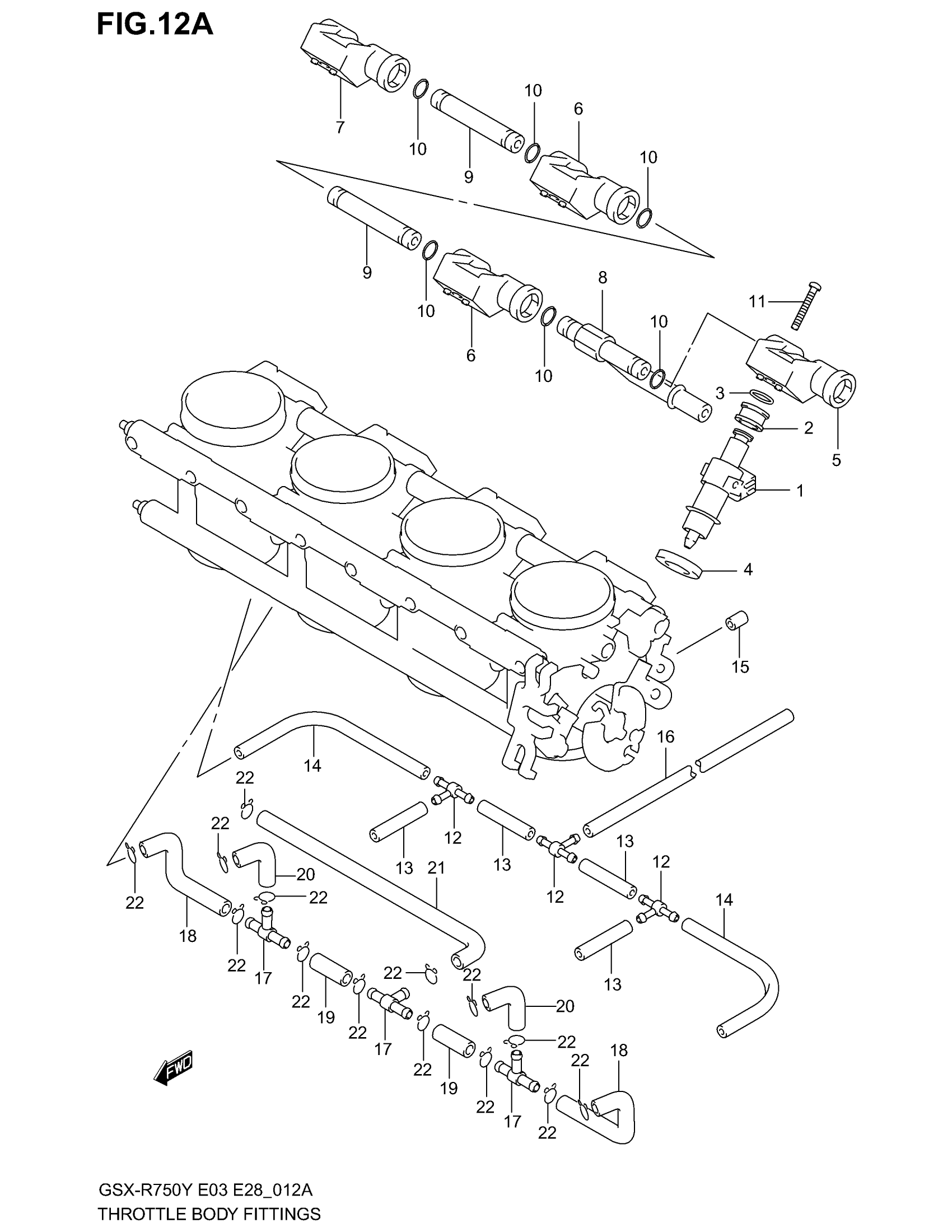 Suzuki GSX-R750 (2003) THROTTLE BODY HOSE/JOINT (MODEL K1) Diagram