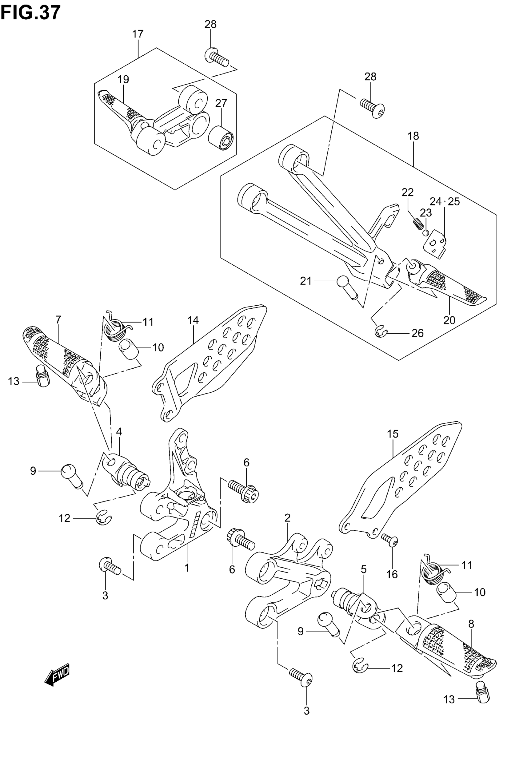 FOOTREST ASSY, PILLION LH | Includes Item(s) 19 - 27