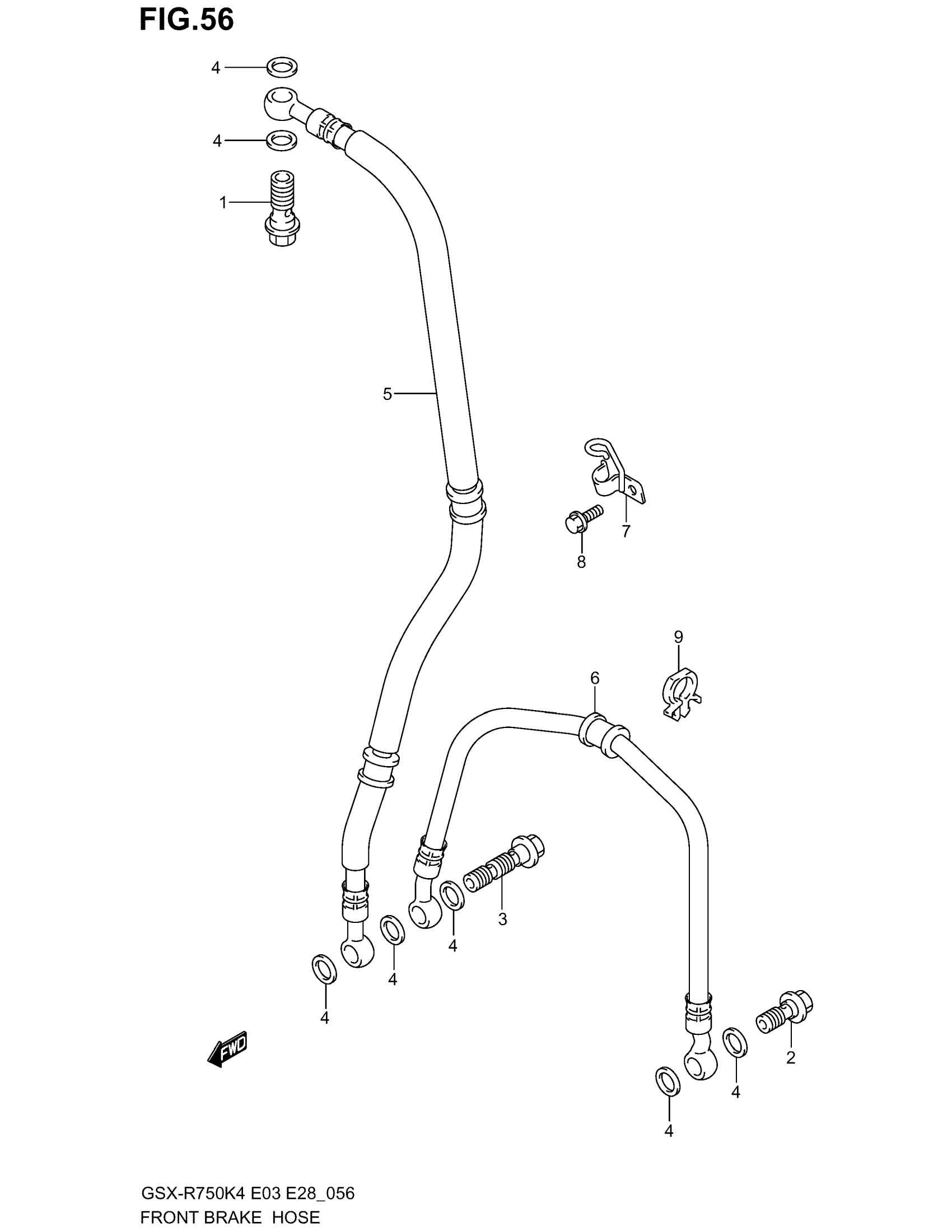 Suzuki GSX-R750 (2005) FRONT BRAKE HOSE Diagram