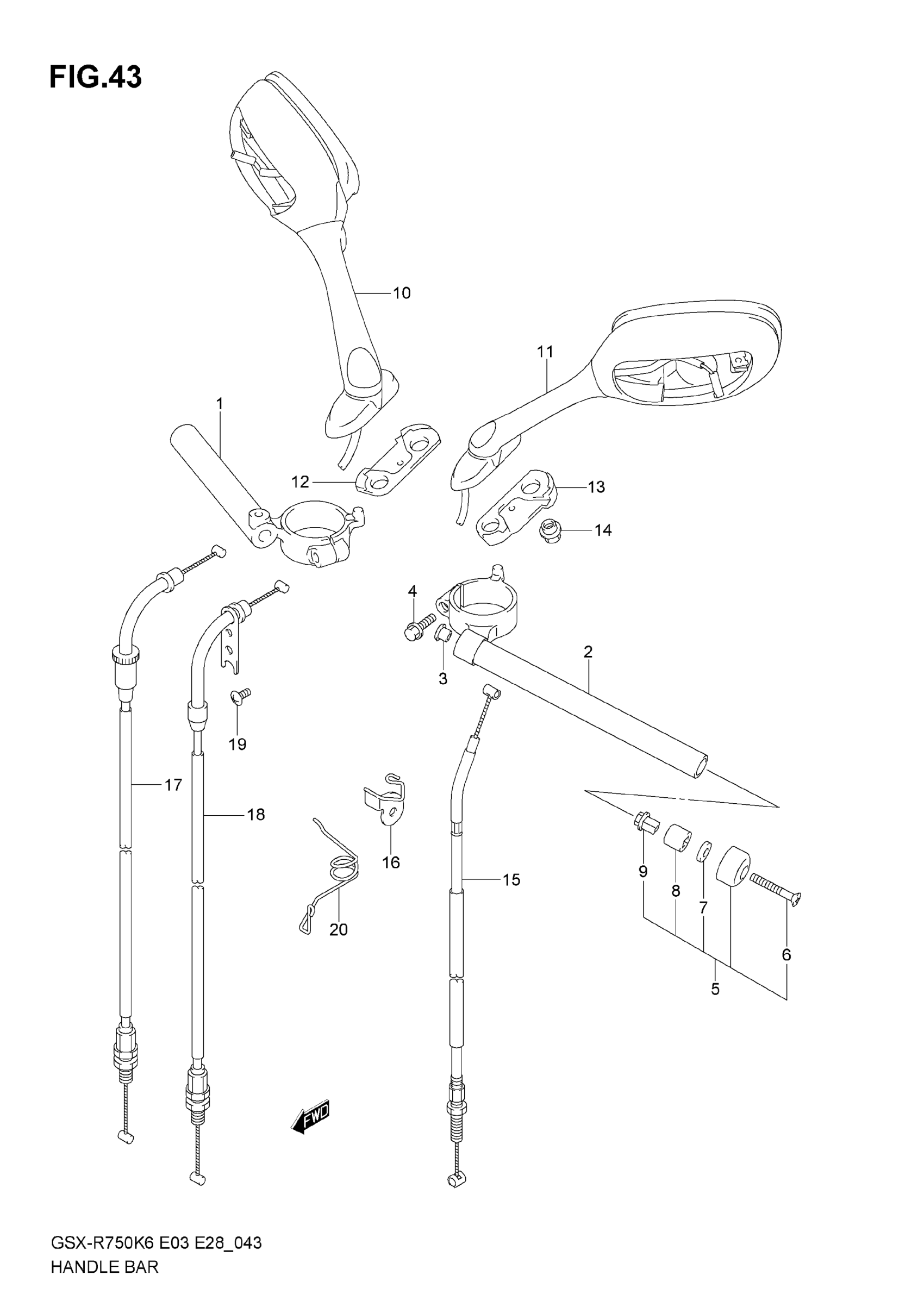 Suzuki GSX-R750 (2007) HANDLEBAR Diagram