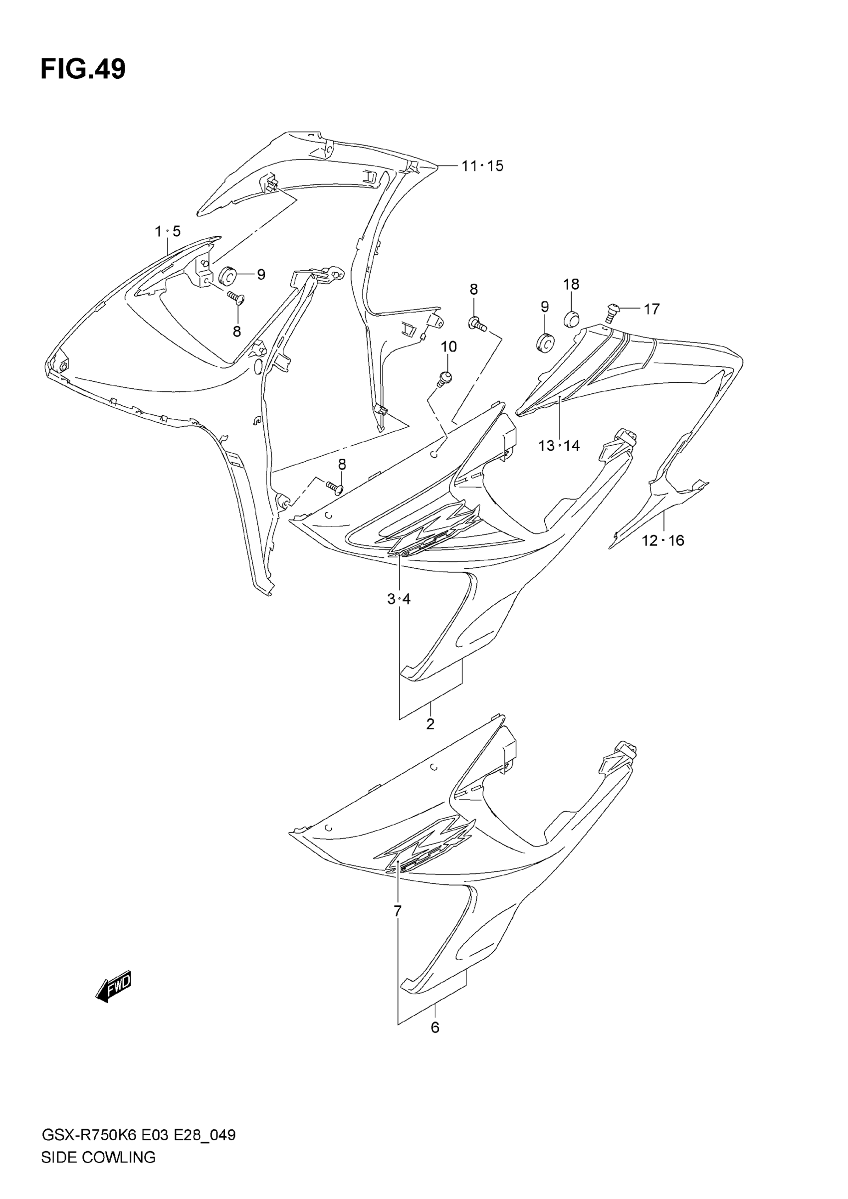 Suzuki GSX-R750 (2007) SIDE COWLING (MODEL K6) Diagram