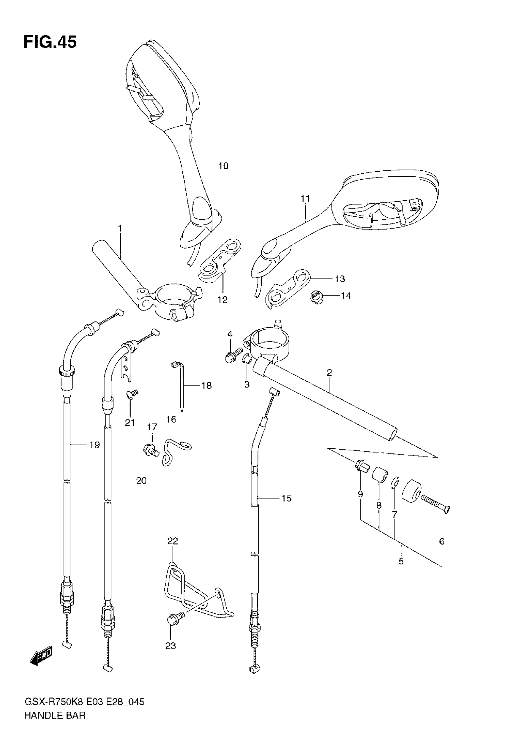 Suzuki GSX-R750 (2008) HANDLEBAR Diagram