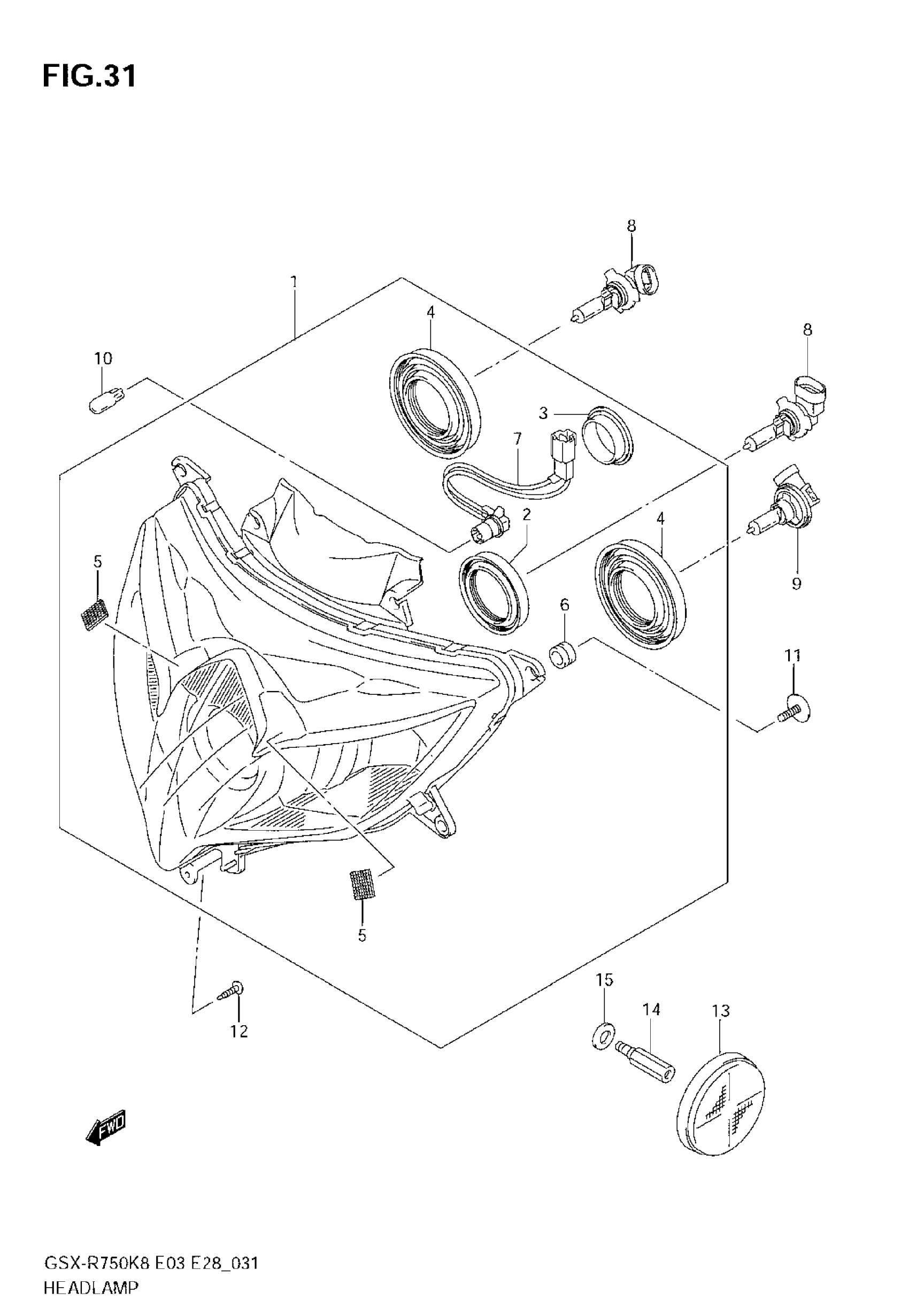 Suzuki GSX-R750 (2008) HEADLAMP Diagram