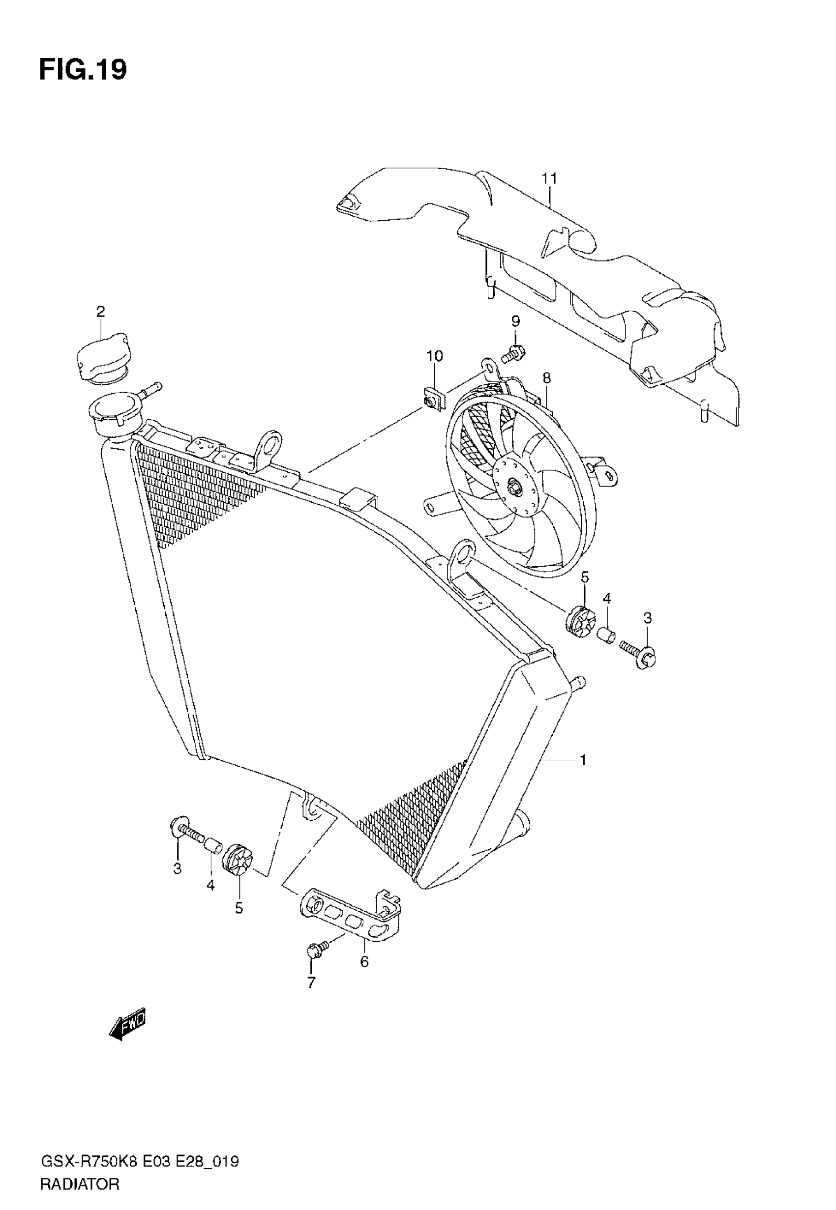 Suzuki GSX-R750 (2008) RADIATOR Diagram