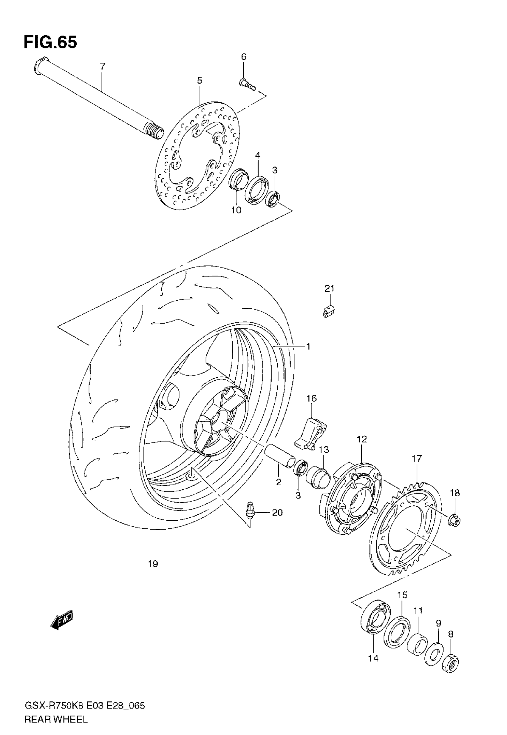 Suzuki GSX-R750 (2008) REAR WHEEL Diagram
