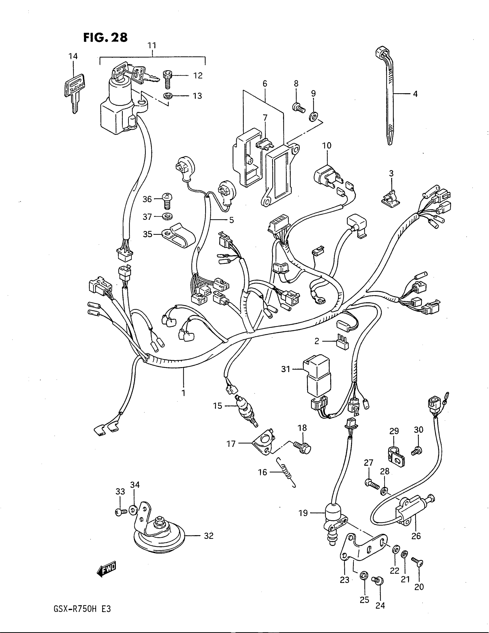 Suzuki GSX-R750G (1987) WIRING HARNESS Diagram