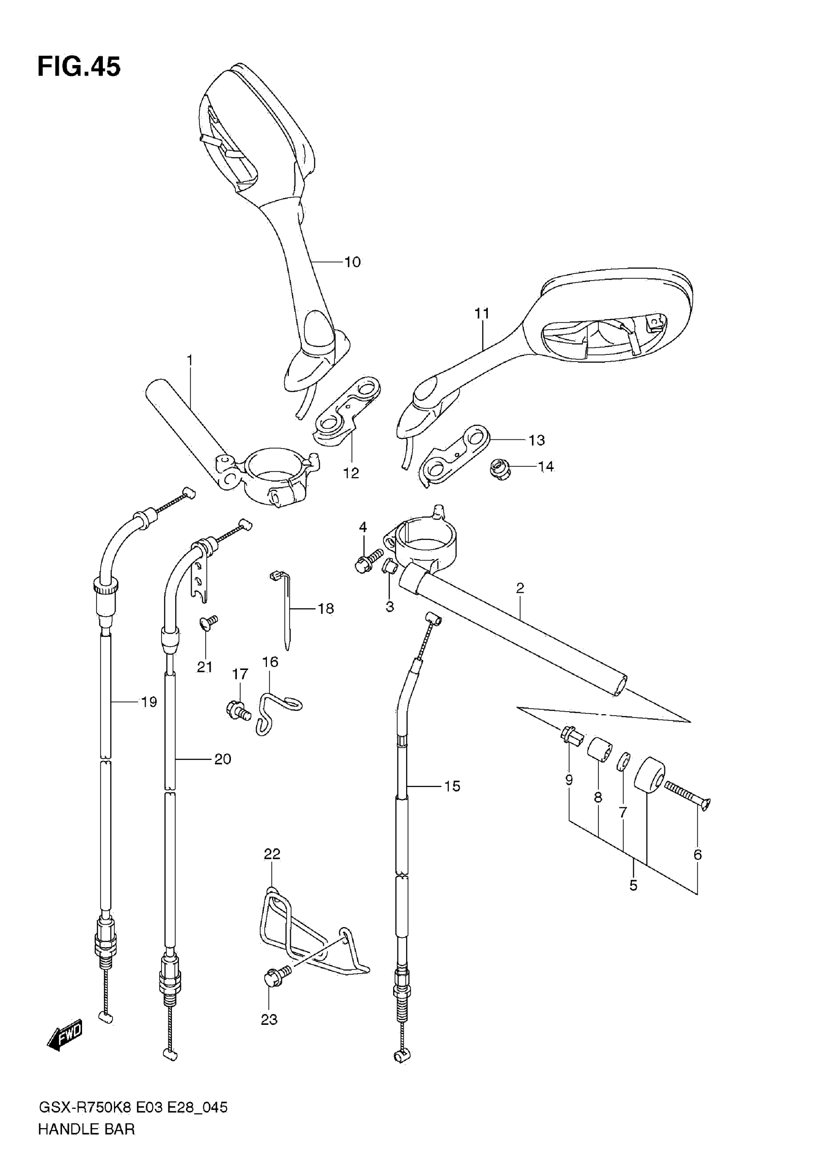 Suzuki GSX-R750K8 (2009) HANDLEBAR Diagram