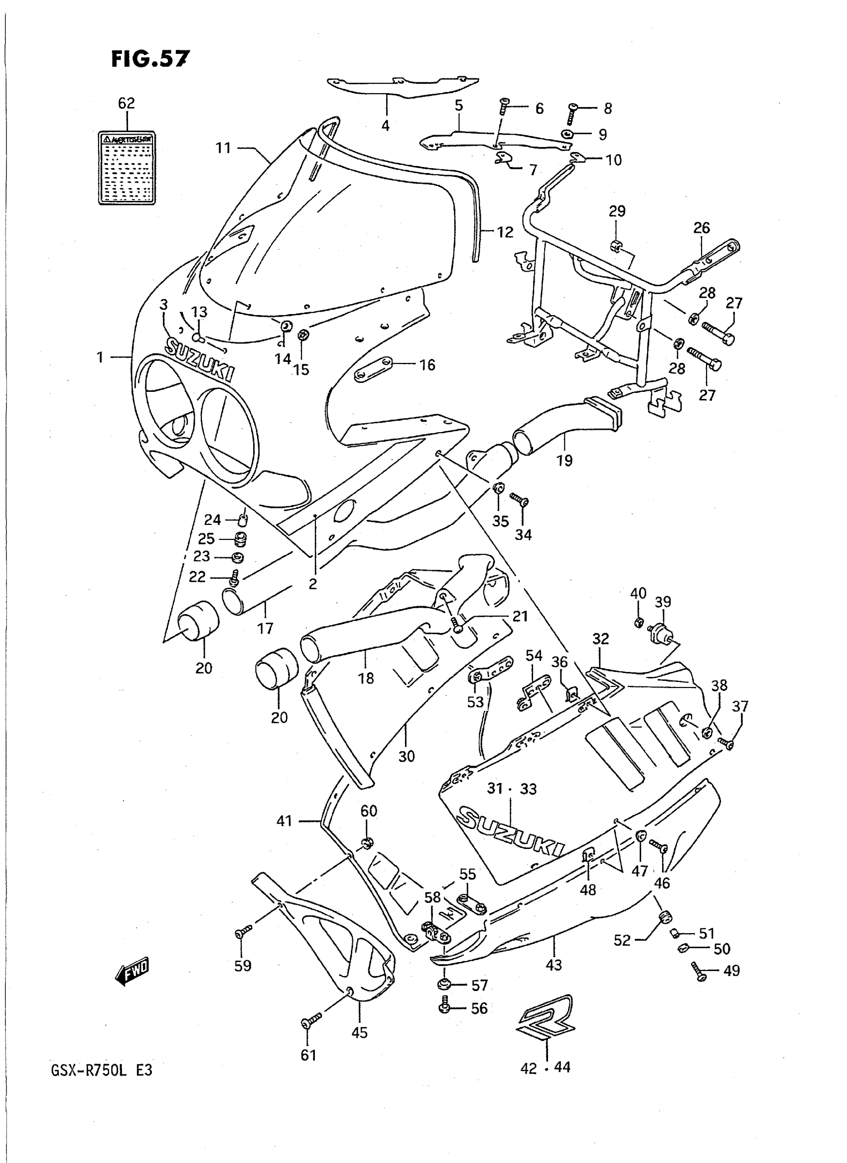 Suzuki GSX-R750L (1990) COWLING (MODEL K 9SR) Diagram
