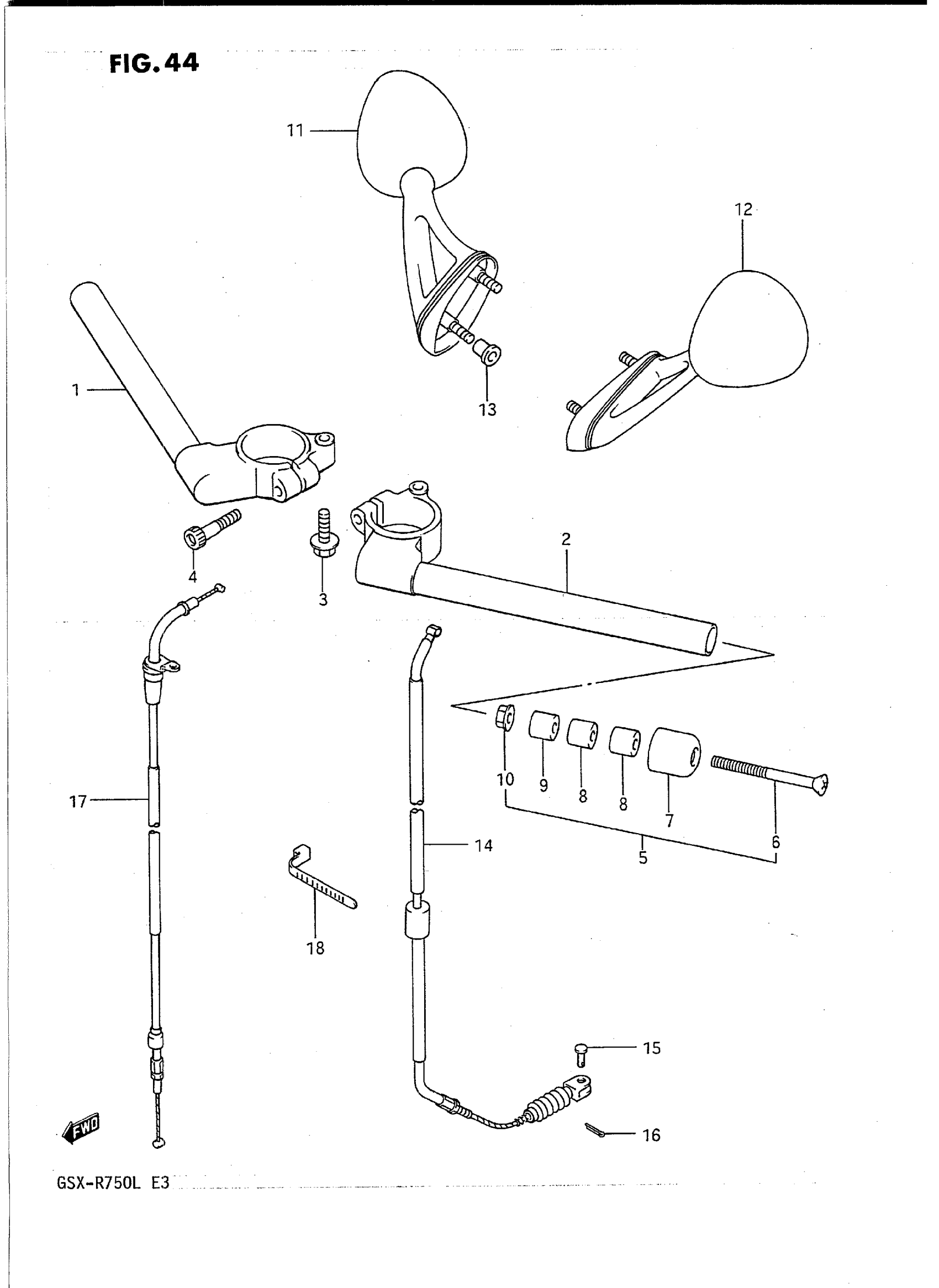 Suzuki GSX-R750L (1990) HANDLEBAR (MODEL J/K) Diagram