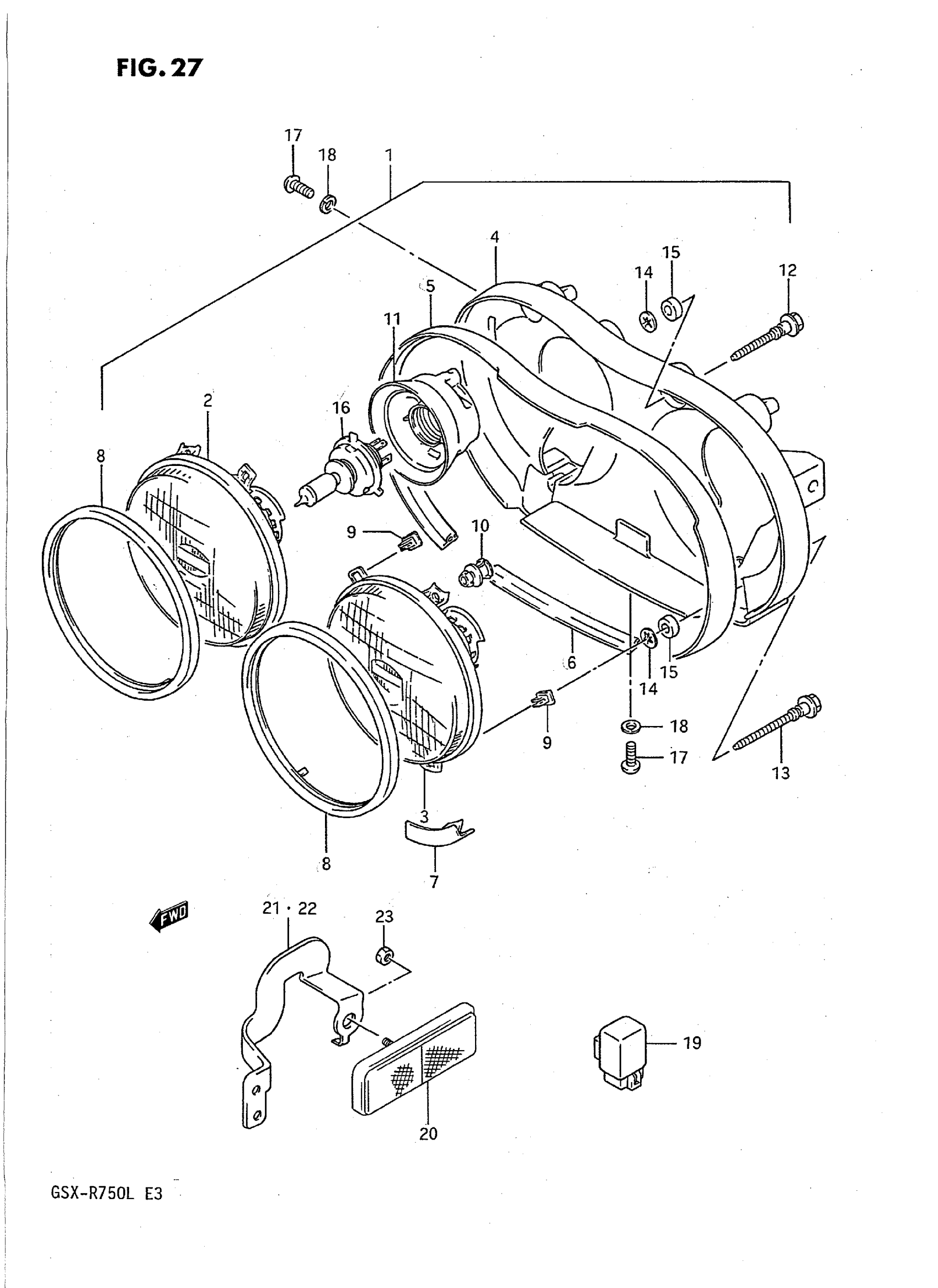 Suzuki GSX-R750L (1990) HEADLAMP (MODEL J/K) Diagram