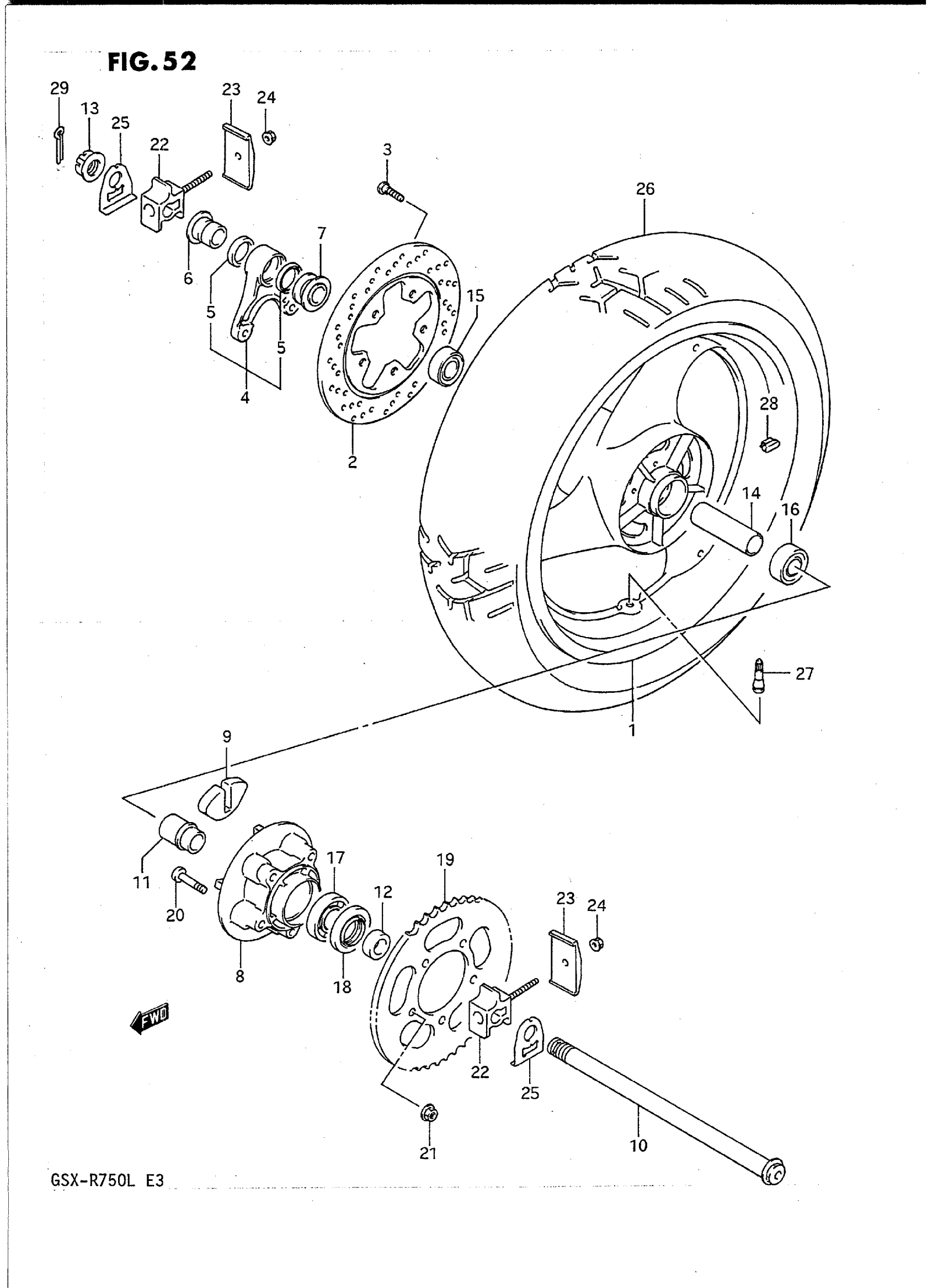 Suzuki GSX-R750L (1990) REAR WHEEL (MODEL J/K) Diagram