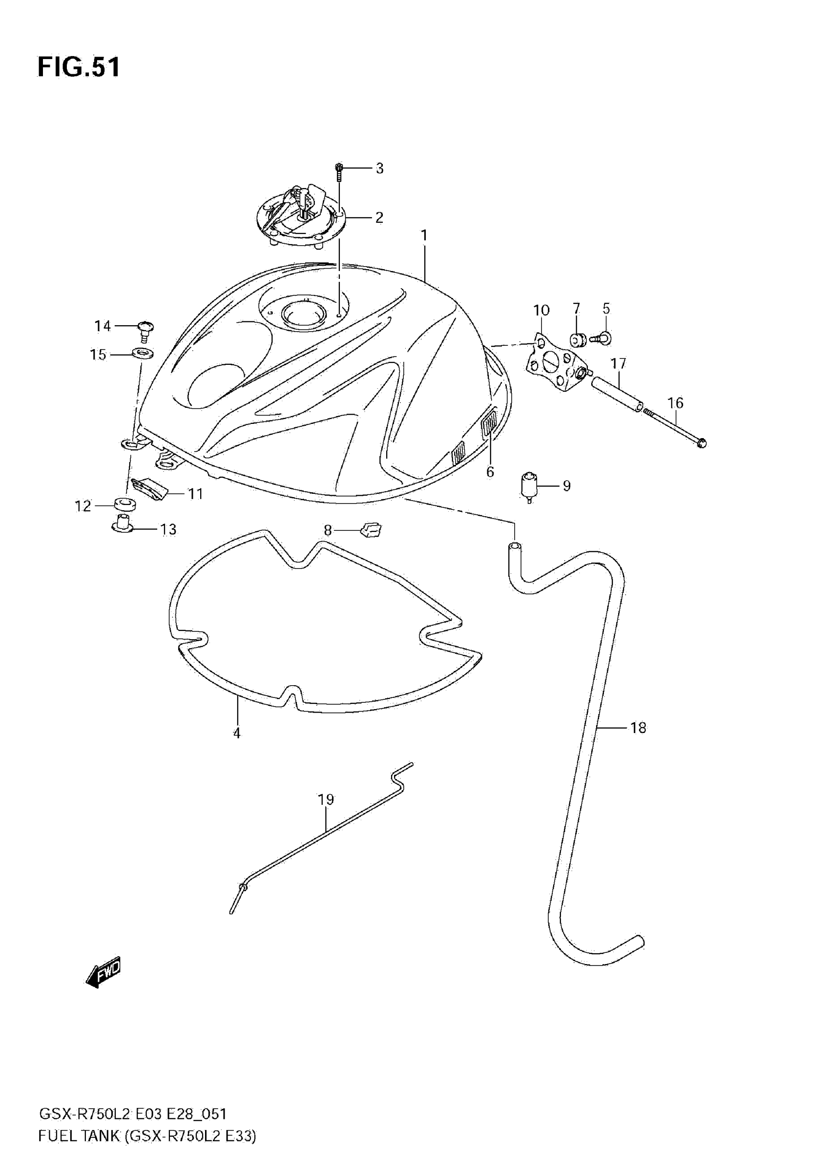 Suzuki GSX-R750L2 (2012) FUEL TANK (GSX-R750 L2 E33) Diagram