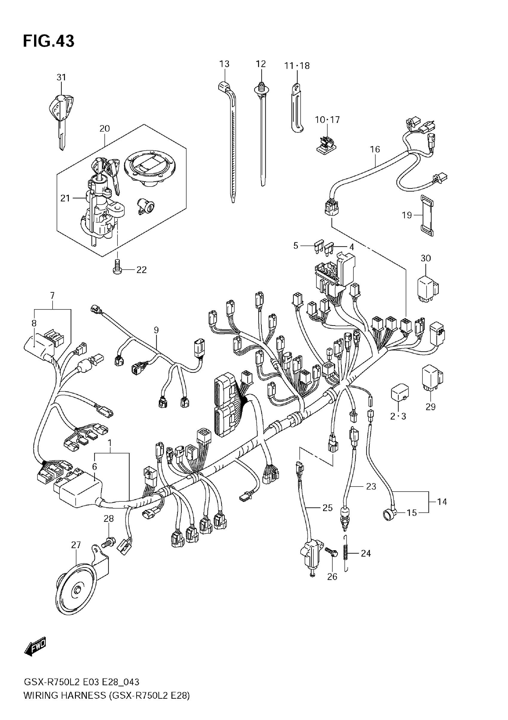 Suzuki GSX-R750L2 (2012) WIRING HARNESS (GSX-R750 L2 E28) Diagram