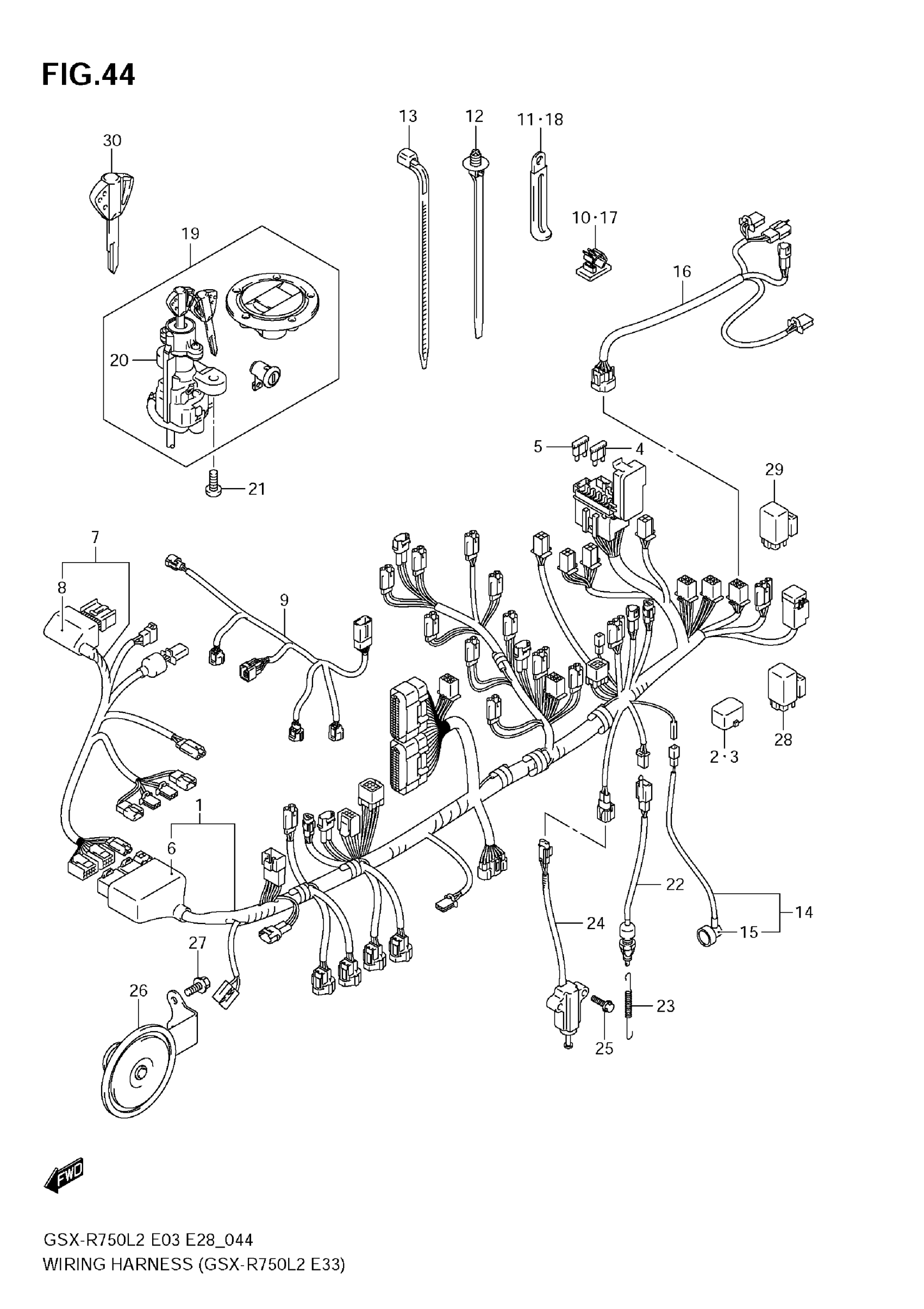 Suzuki GSX-R750L2 (2012) WIRING HARNESS (GSX-R750 L2 E33) Diagram