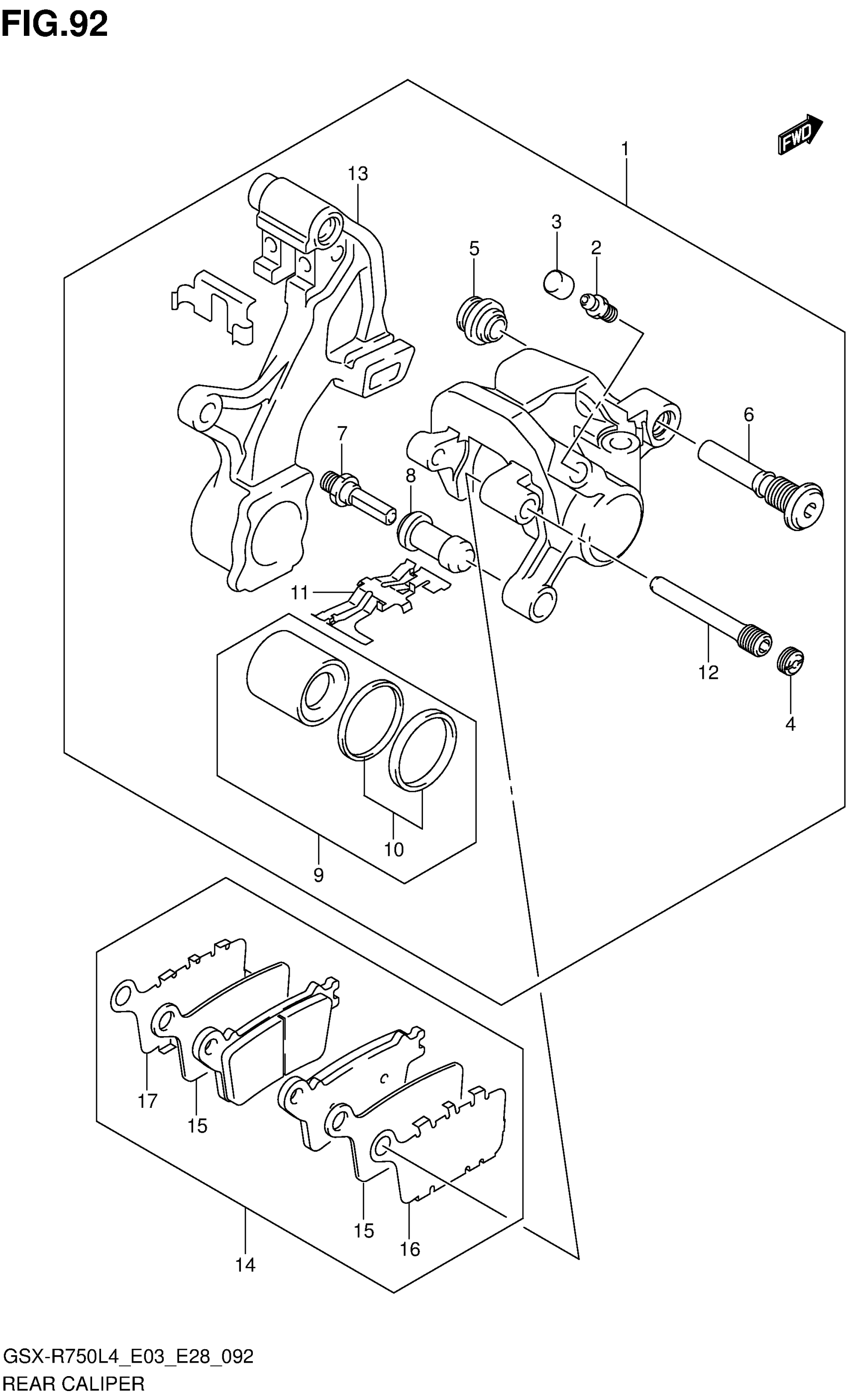 Suzuki GSX-R750L4 (2014) REAR CALIPER Diagram