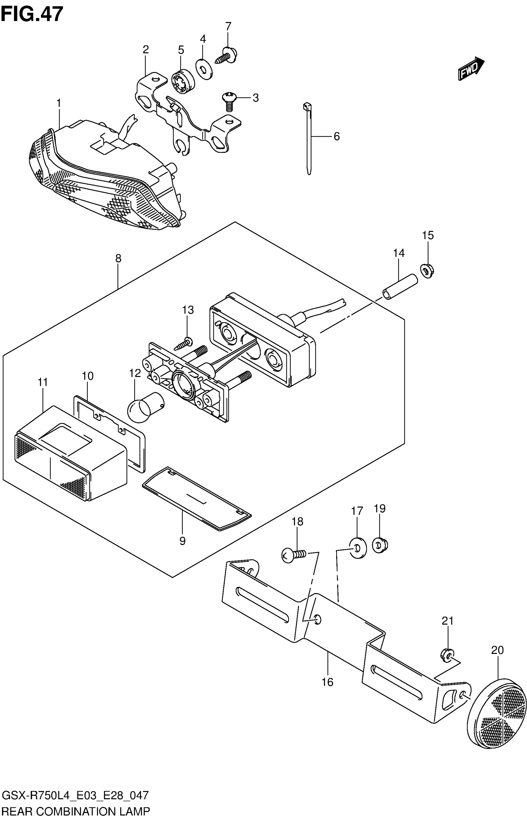Suzuki GSX-R750L4 (2014) REAR COMBINATION LAMP (GSX-R750L4 E03) Diagram
