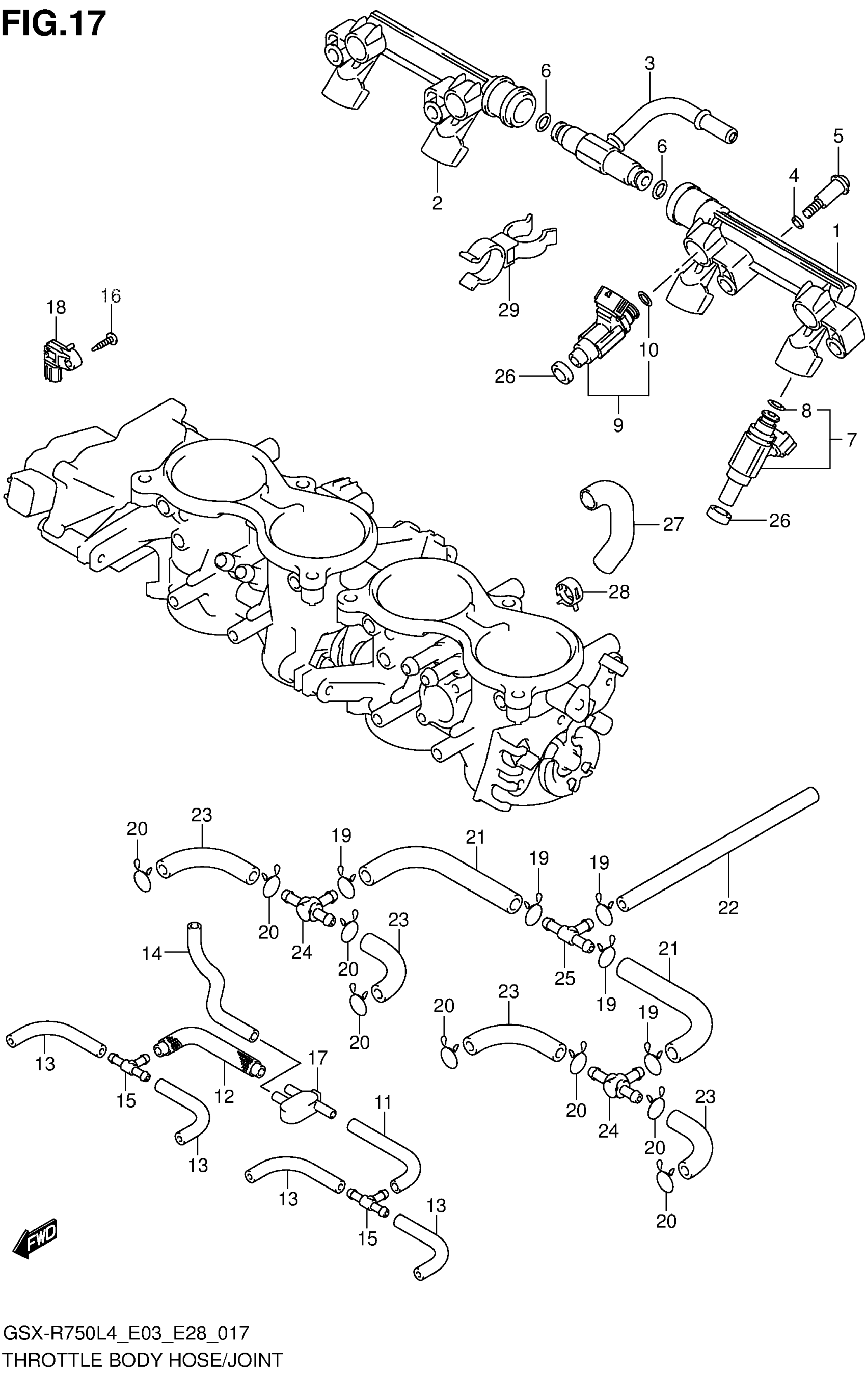 THROTTLE BODY HOSE/JOINT (GSX-R750L4 E33)