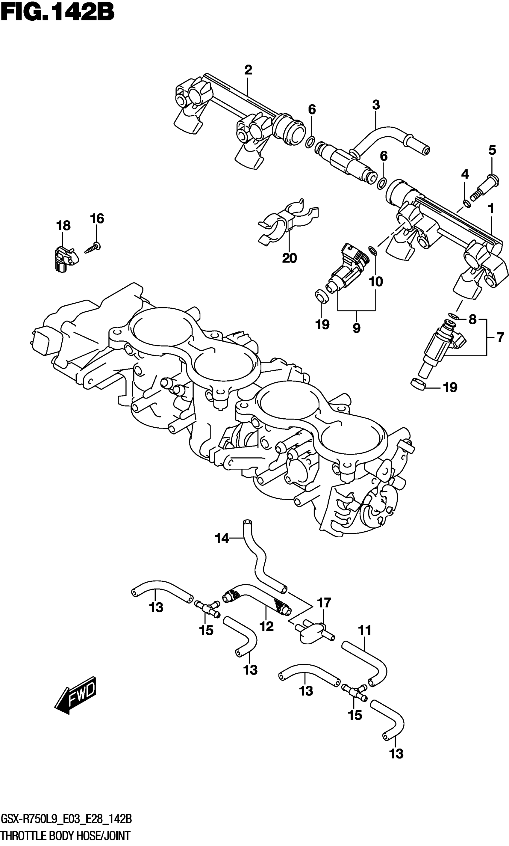 Suzuki GSX-R750L9 (2019) THROTTLE BODY HOSE/JOINT (GSX-R750L9 E28) Diagram