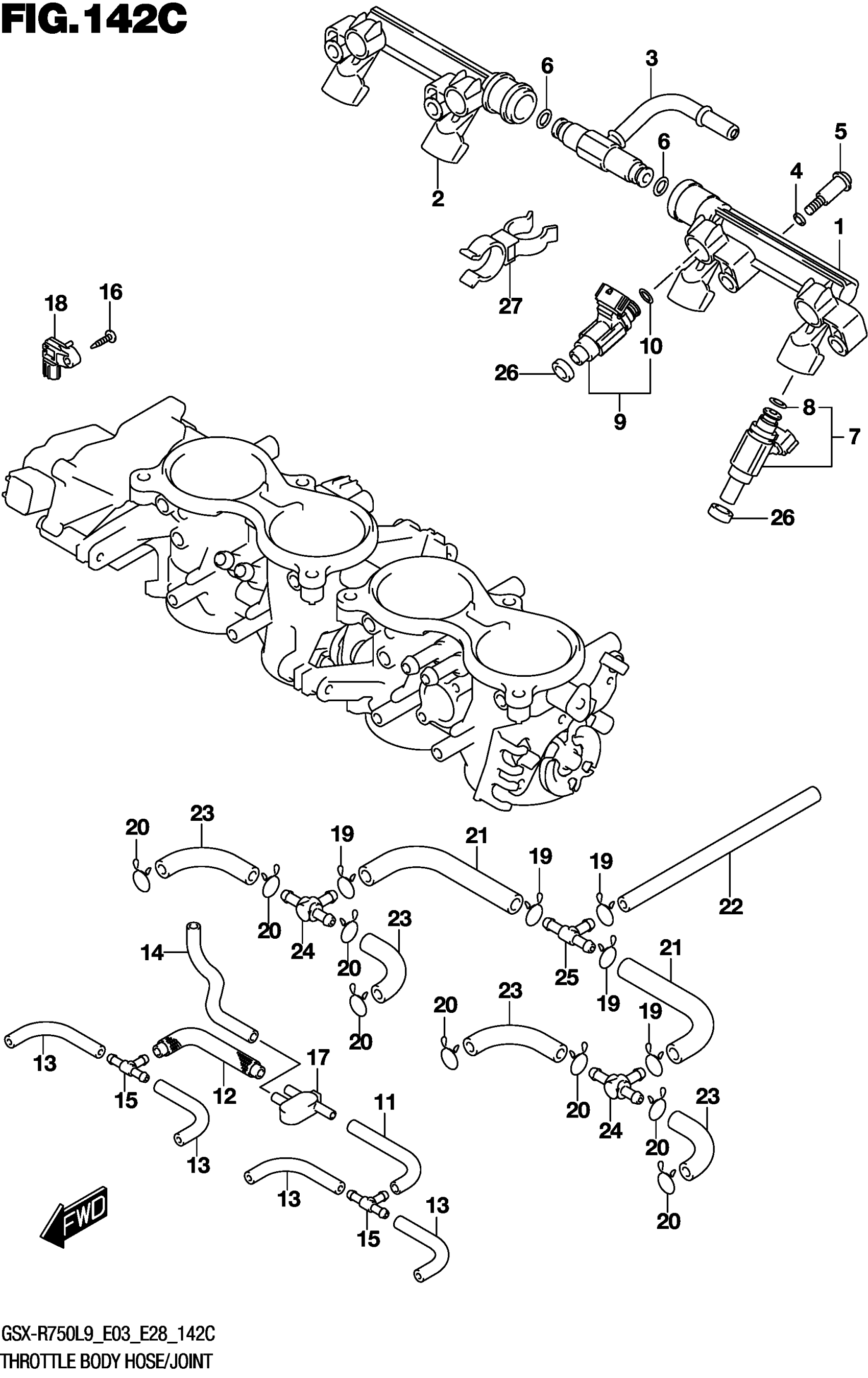 Suzuki GSX-R750L9 (2019) THROTTLE BODY HOSE/JOINT (GSX-R750L9 E33) Diagram
