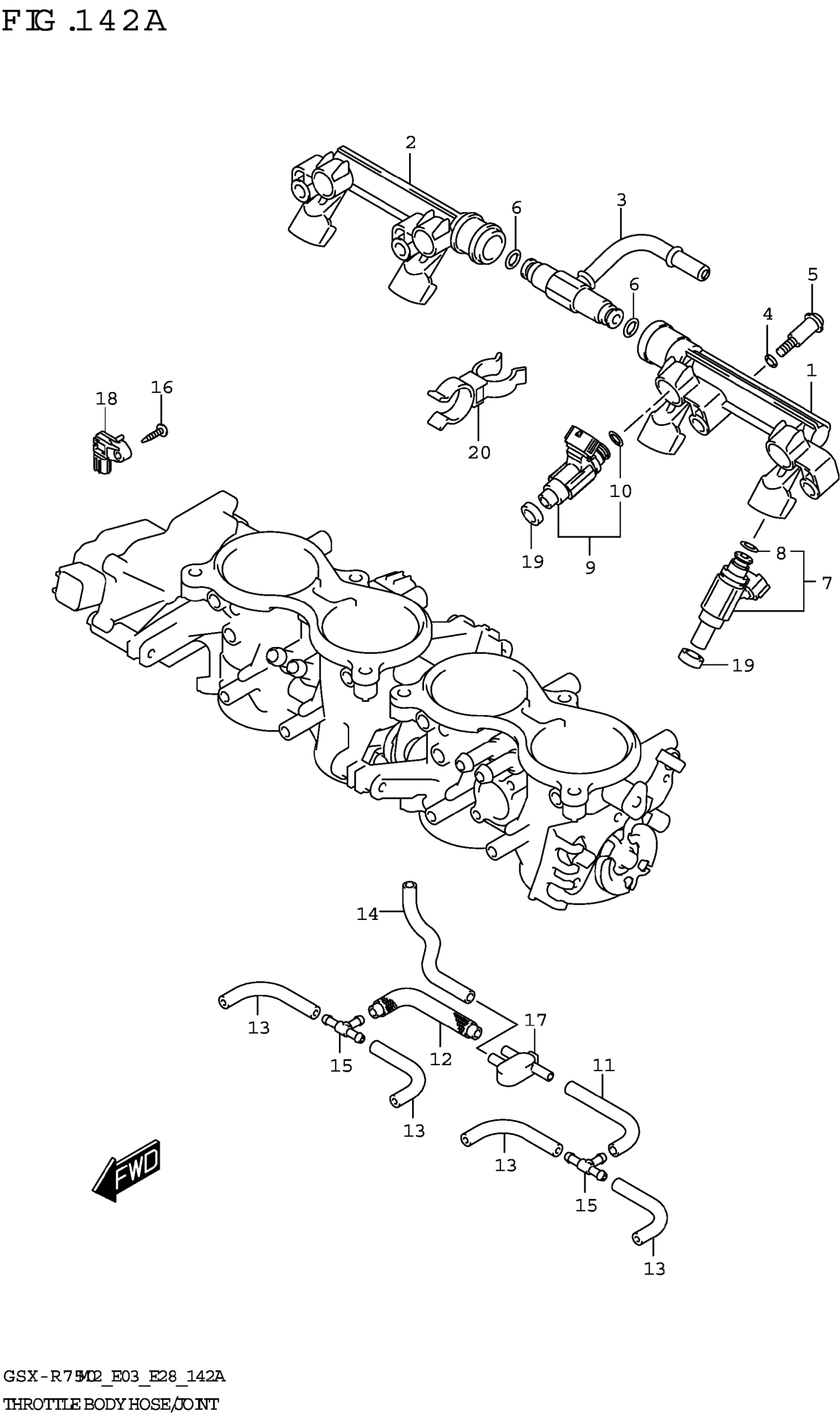 Suzuki GSX-R750M2 (2022) THROTTLE BODY HOSE/JOINT (E03,E28) Diagram