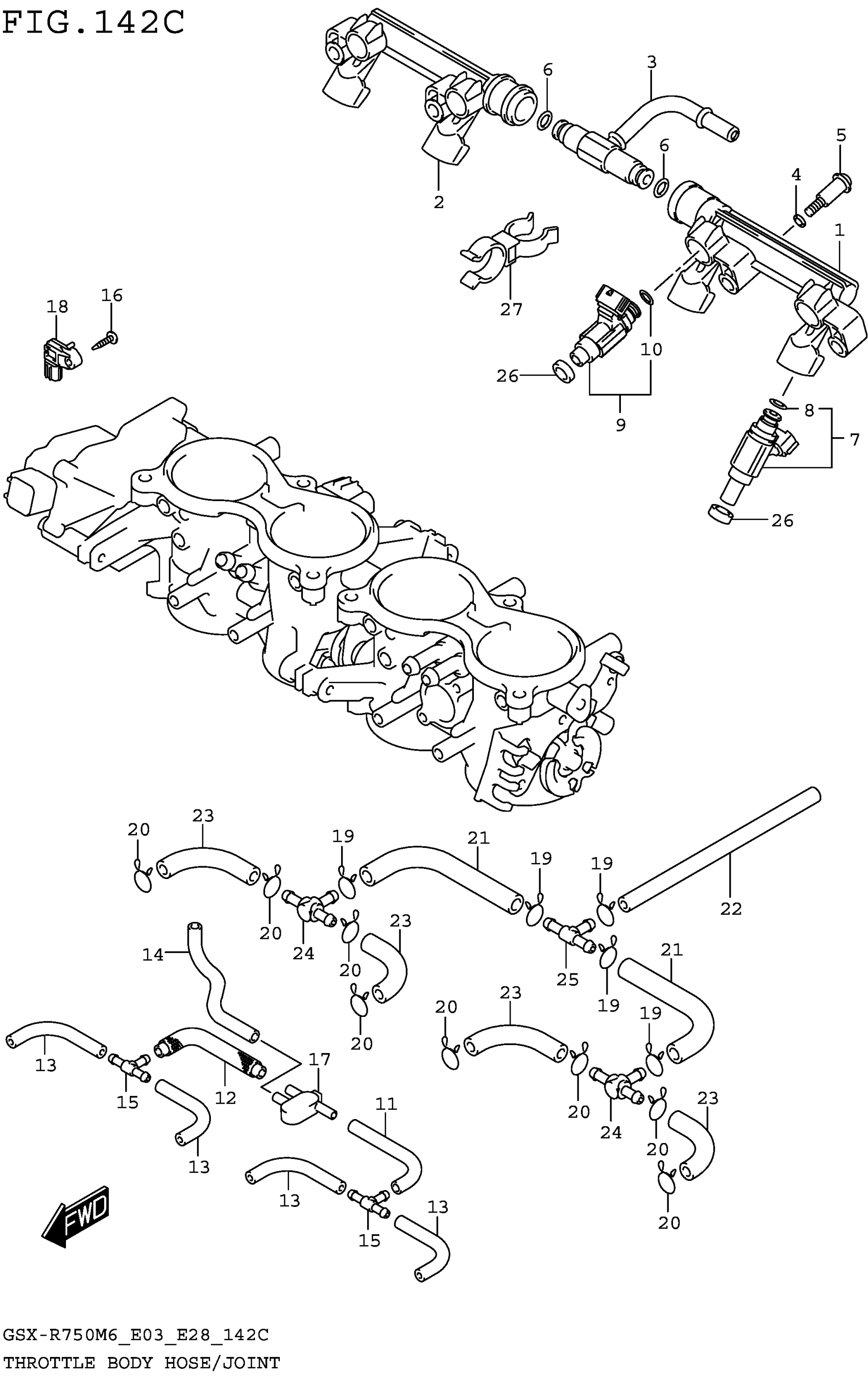 Suzuki GSX-R750M6 (2026) THROTTLE BODY HOSE/JOINT (GSX-R750M6 E33) Diagram