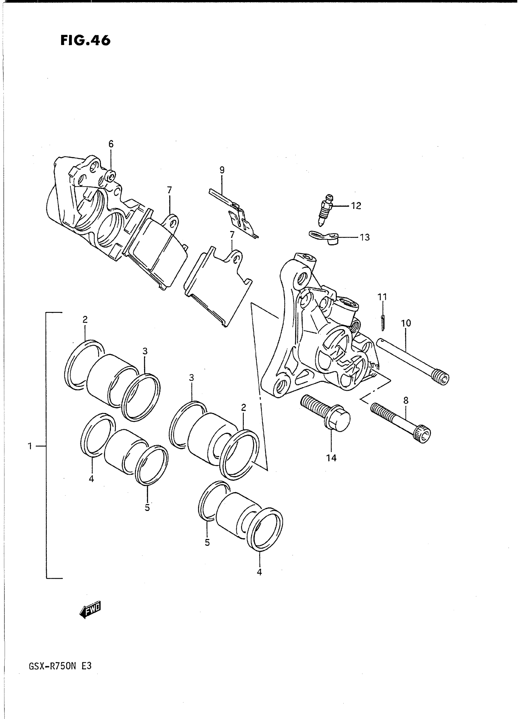 Suzuki GSX-R750N (1992) FRONT CALIPERS Diagram