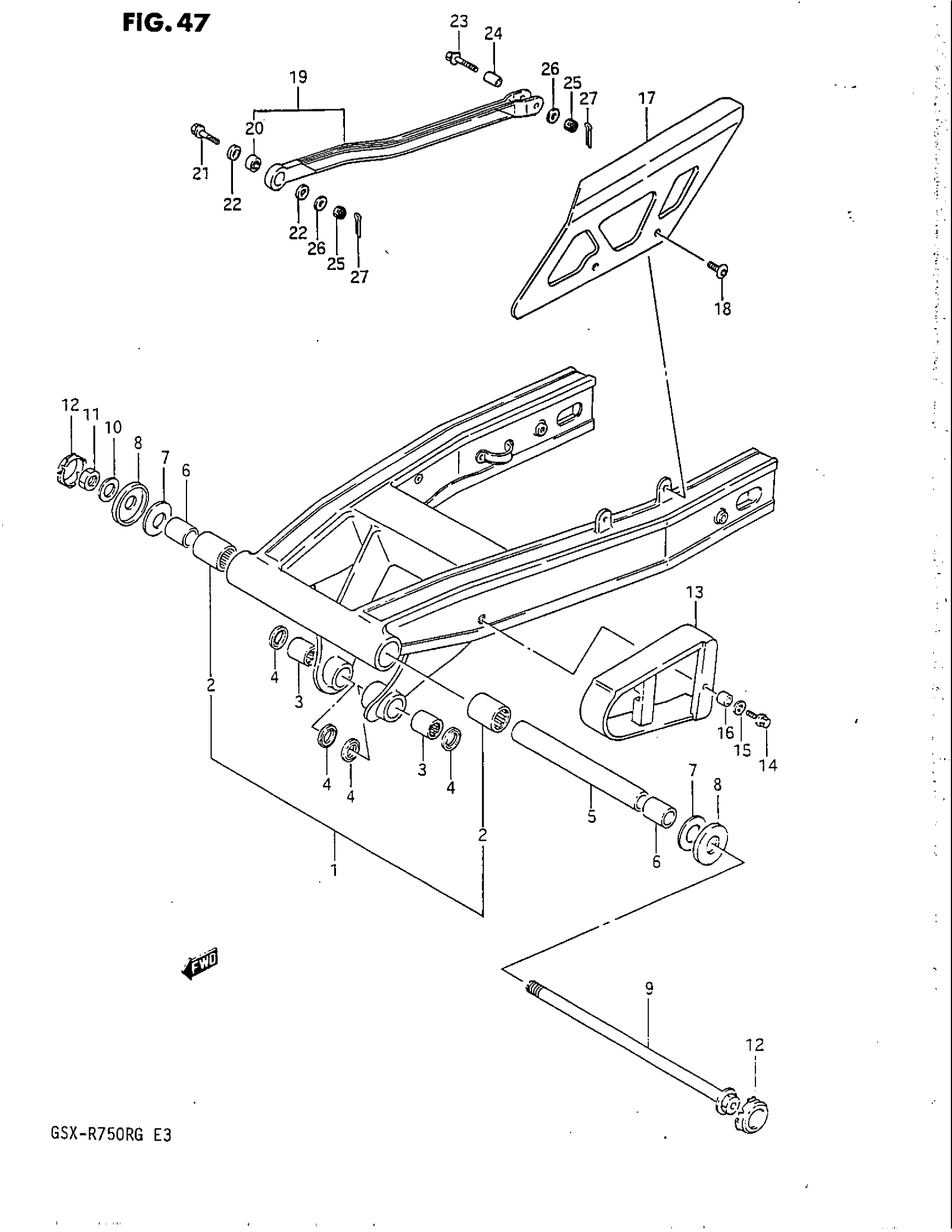 Suzuki GSX-R750R (1986) REAR SWINGING ARM Diagram