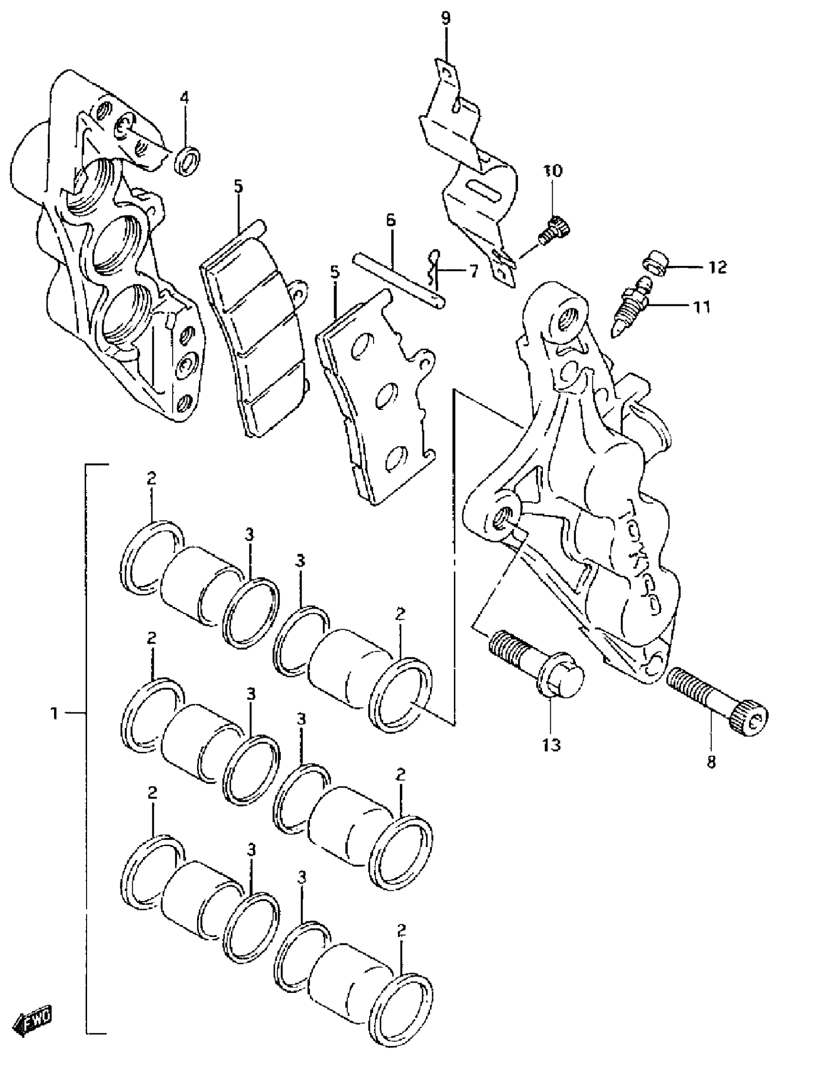Suzuki GSX-R750W (1995) FRONT CALIPERS (MODEL R) Diagram