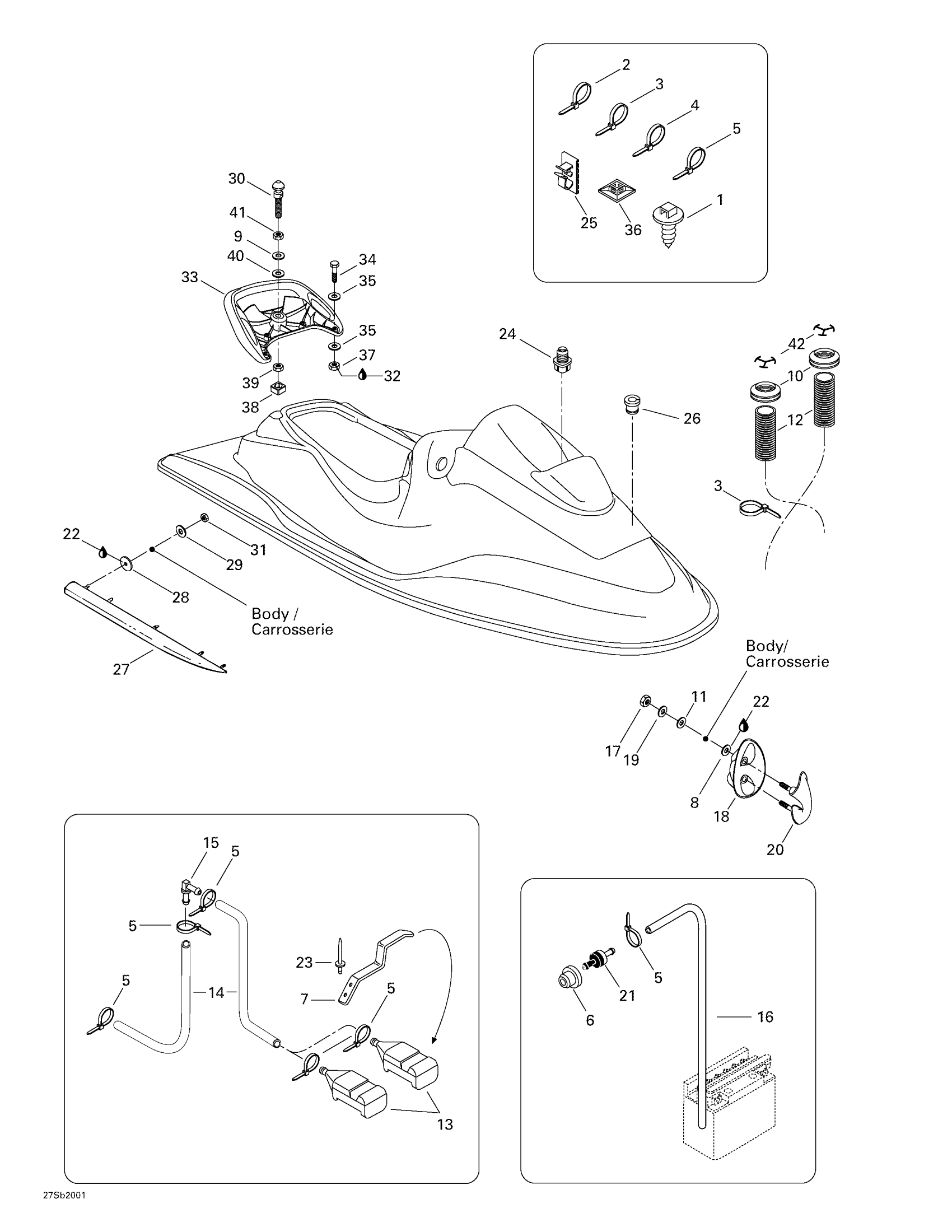Sea-doo GSX RFI, 5645/5654, 2000 09- Body, Front View Diagram