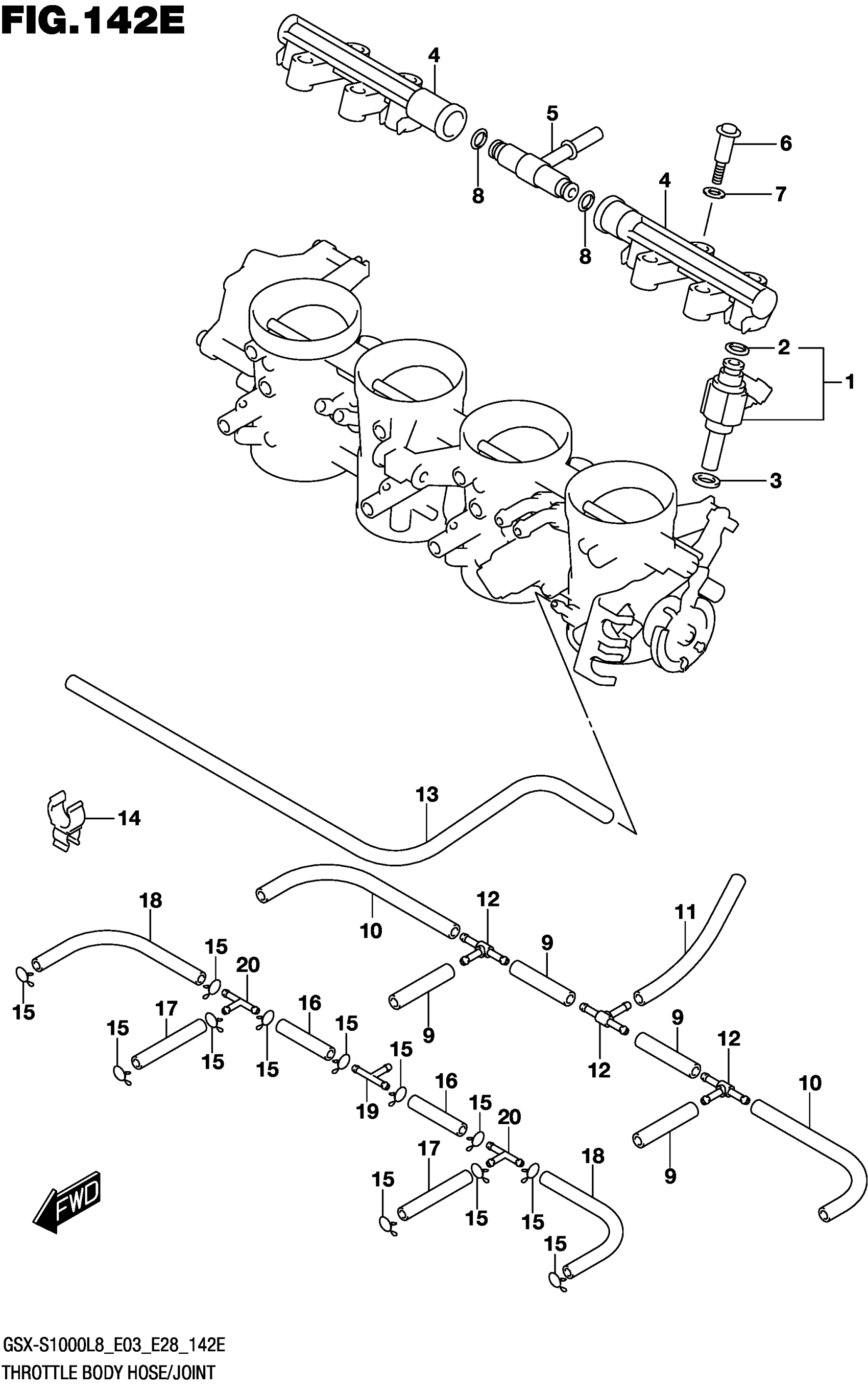 Suzuki GSX-S1000AL8 (2018) THROTTLE BODY HOSE/JOINT (GSX-S1000L8 E33) Diagram
