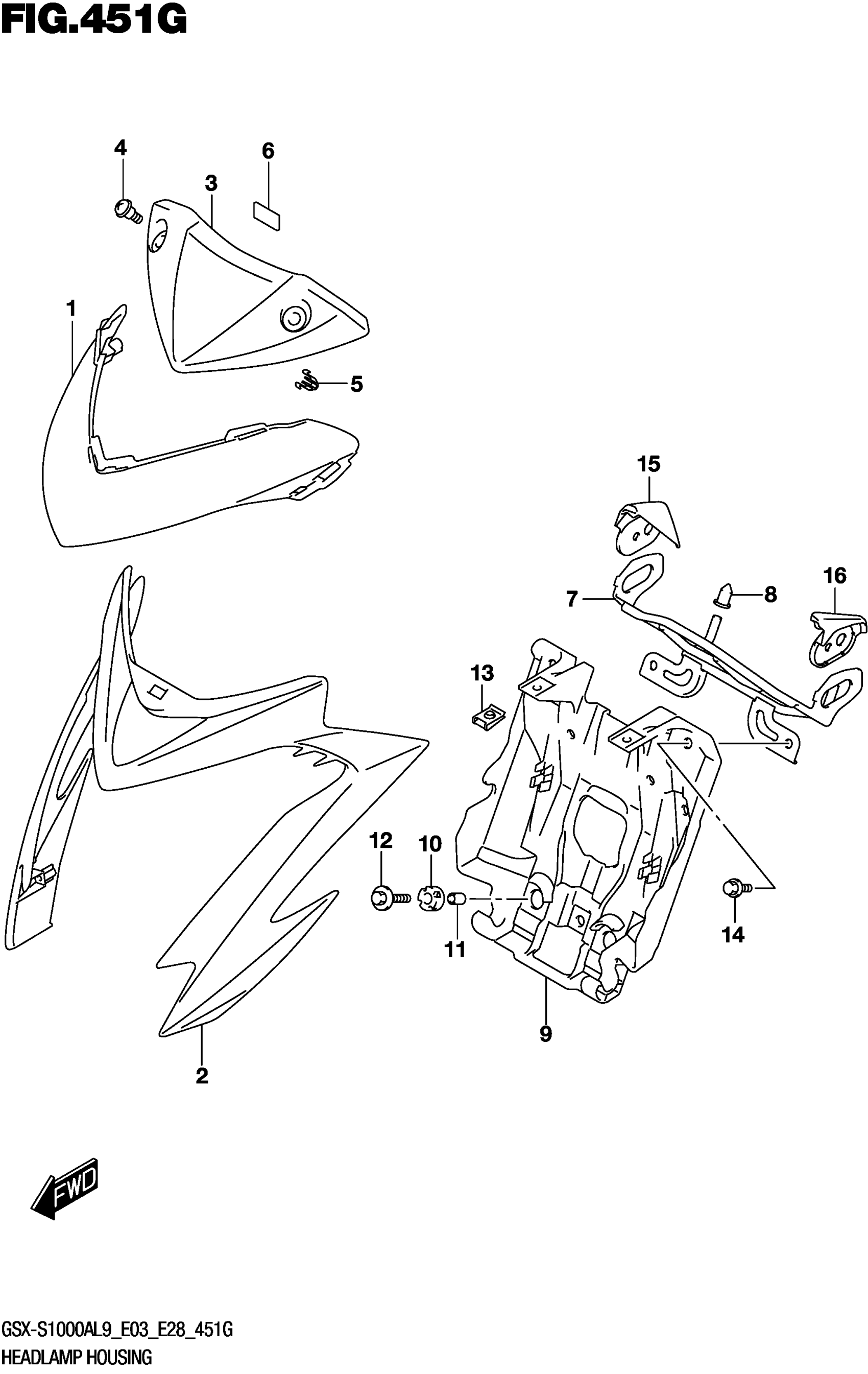 Suzuki GSX-S1000AL9 (2019) HEADLAMP HOUSING (GSX-S1000AZL9 E03) Diagram