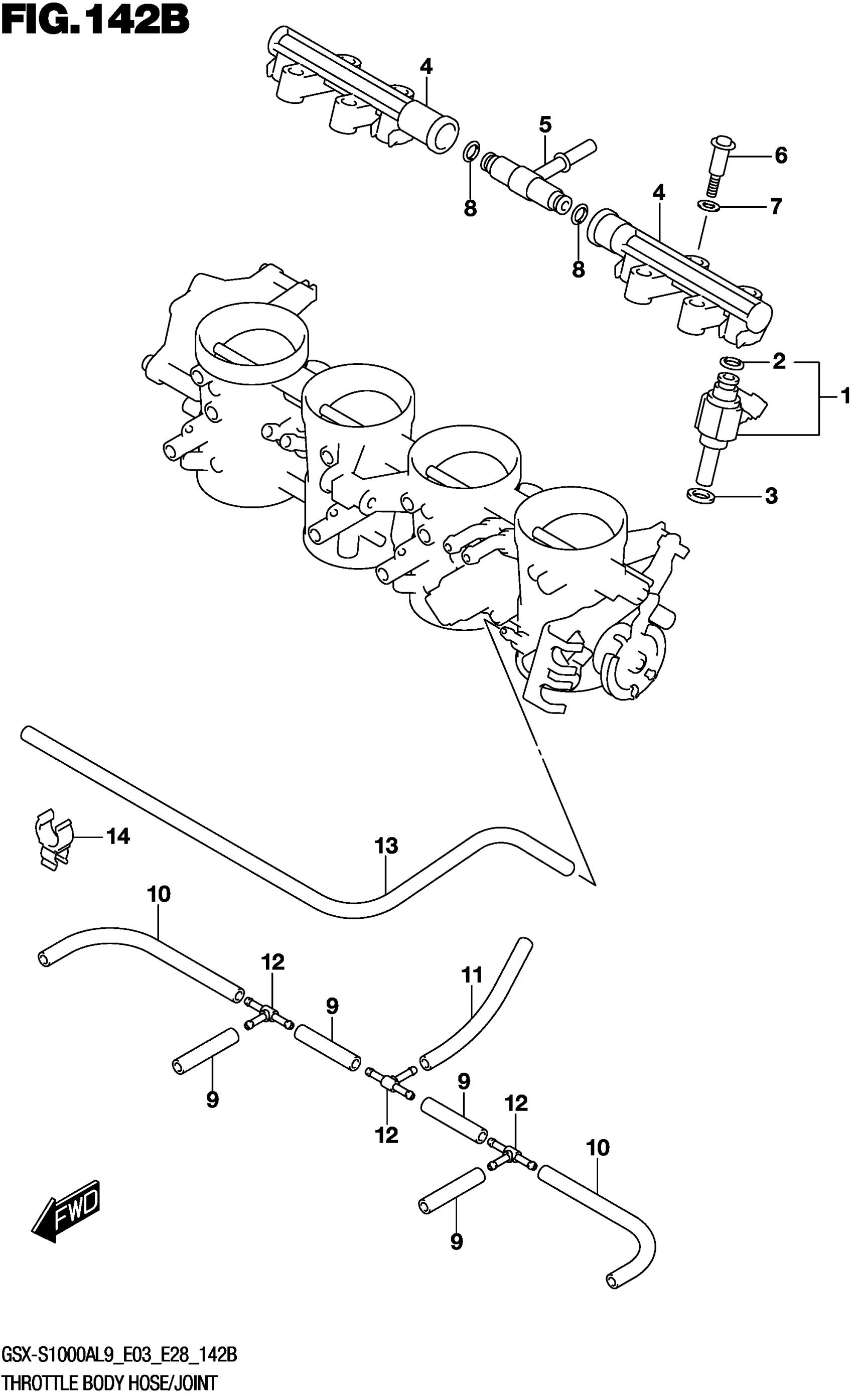 Suzuki GSX-S1000AL9 (2019) THROTTLE BODY HOSE/JOINT (GSX-S1000AL9 E28) Diagram
