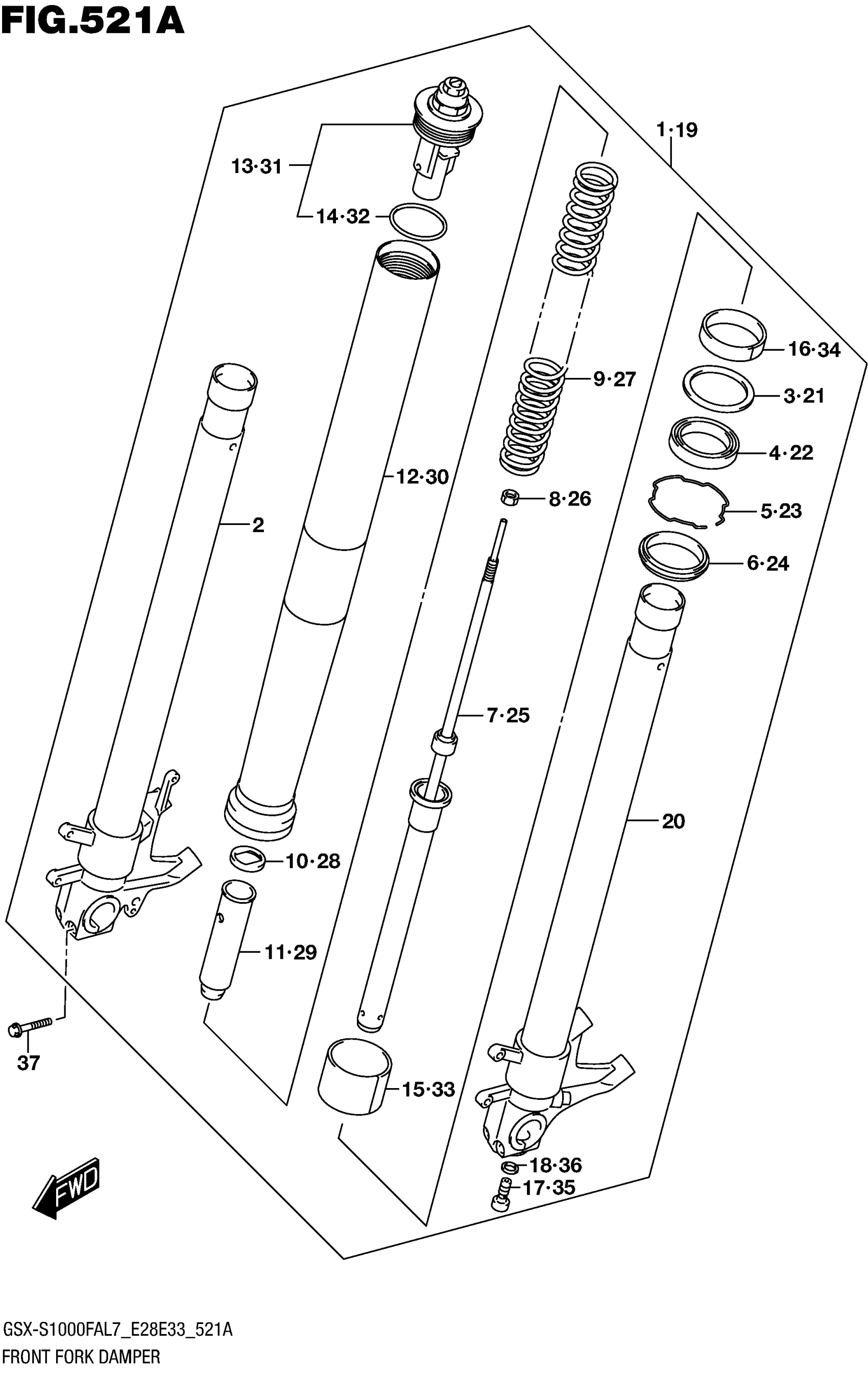 Suzuki GSX-S1000FAL7 (2017) FRONT FORK DAMPER Diagram