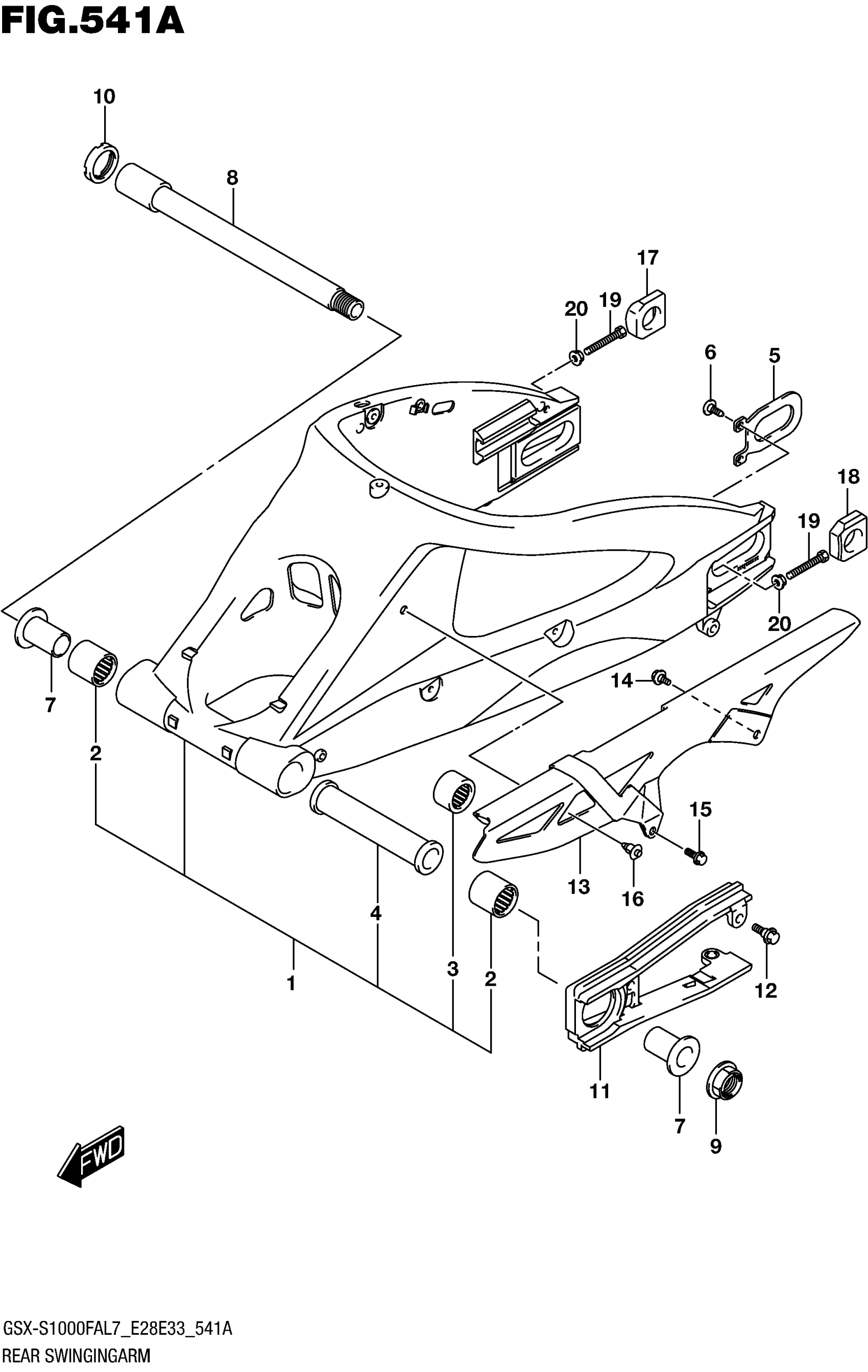 Suzuki GSX-S1000FAL7 (2017) REAR SWINGINGARM Diagram