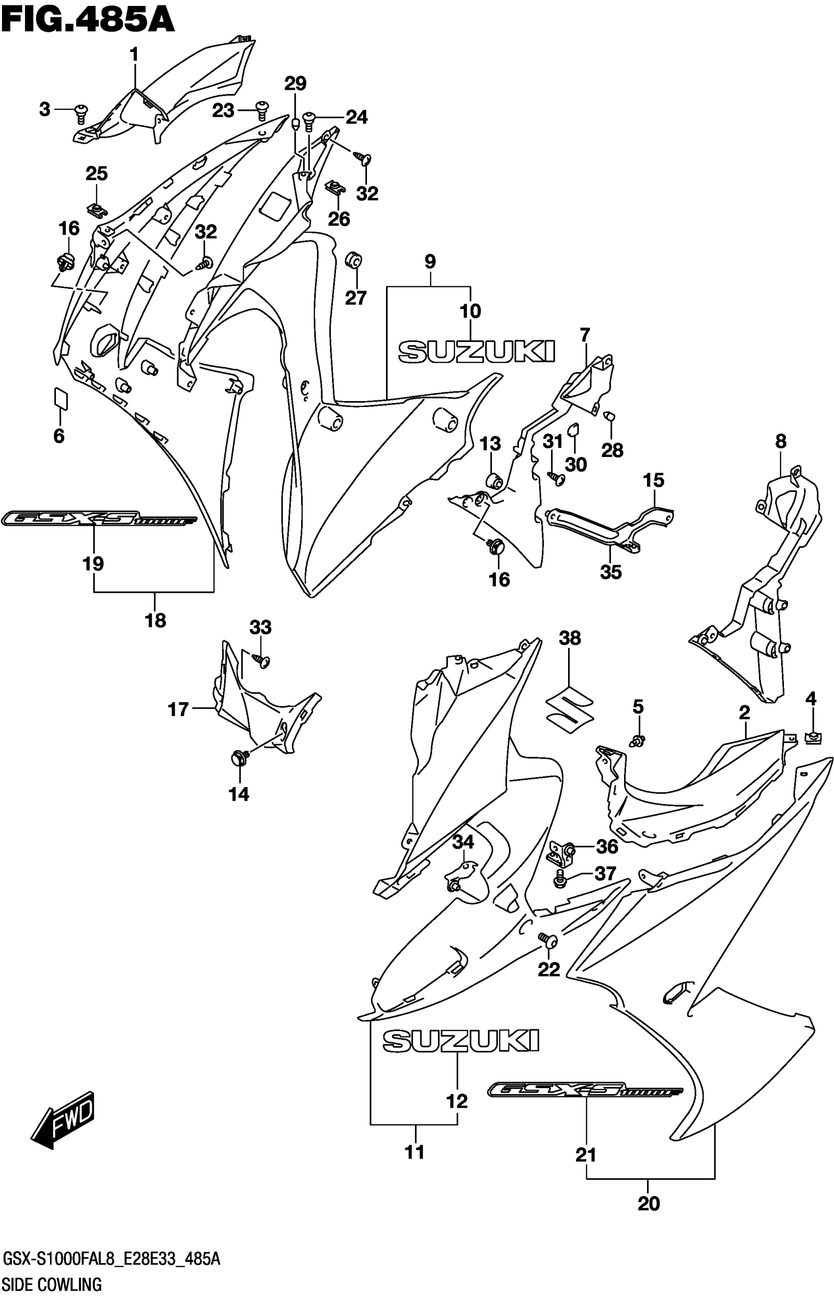Suzuki GSX-S1000FAL8 (2018) SIDE COWLING Diagram