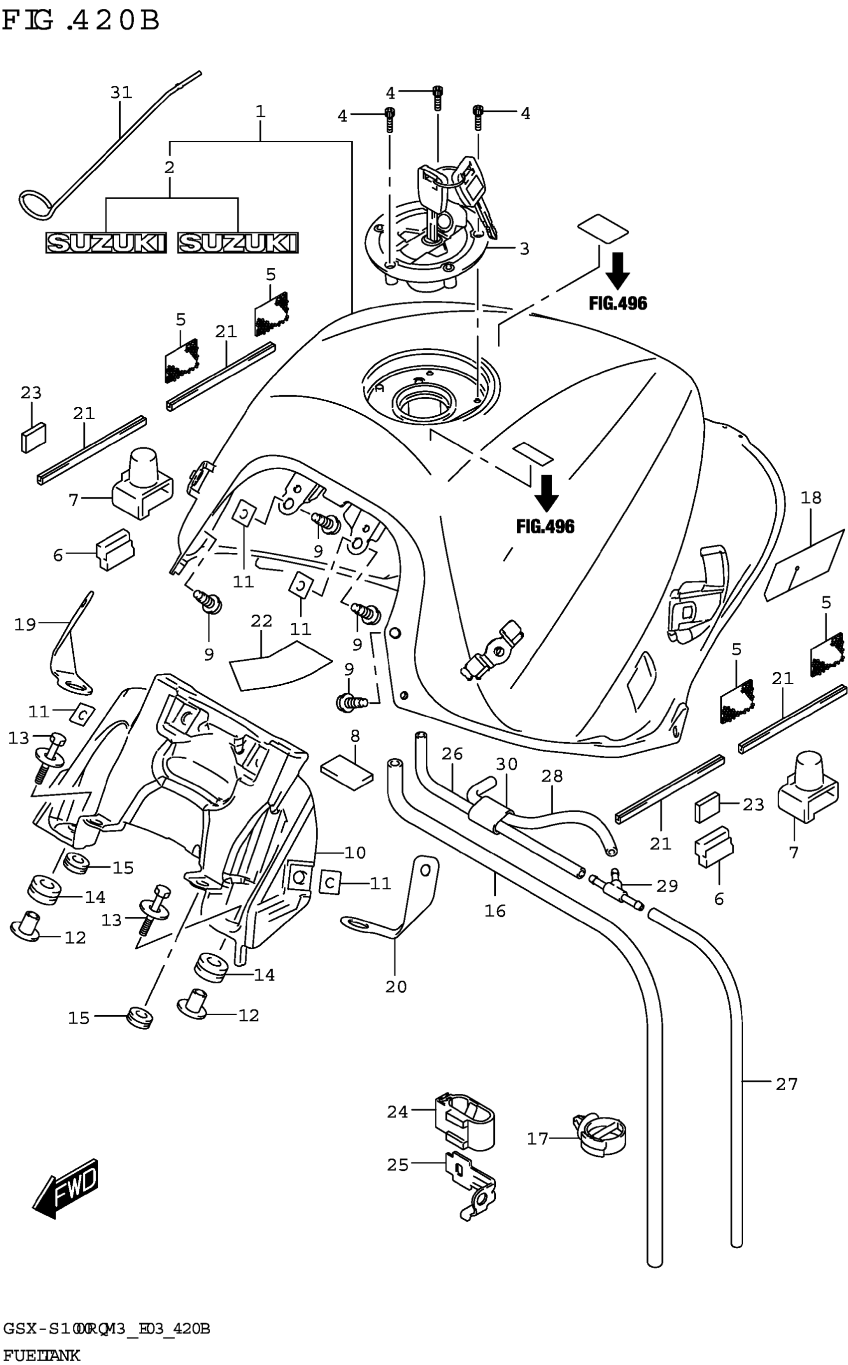 Suzuki GSX-S1000RQM3 (2023) FUEL TANK (E03,E28) Diagram
