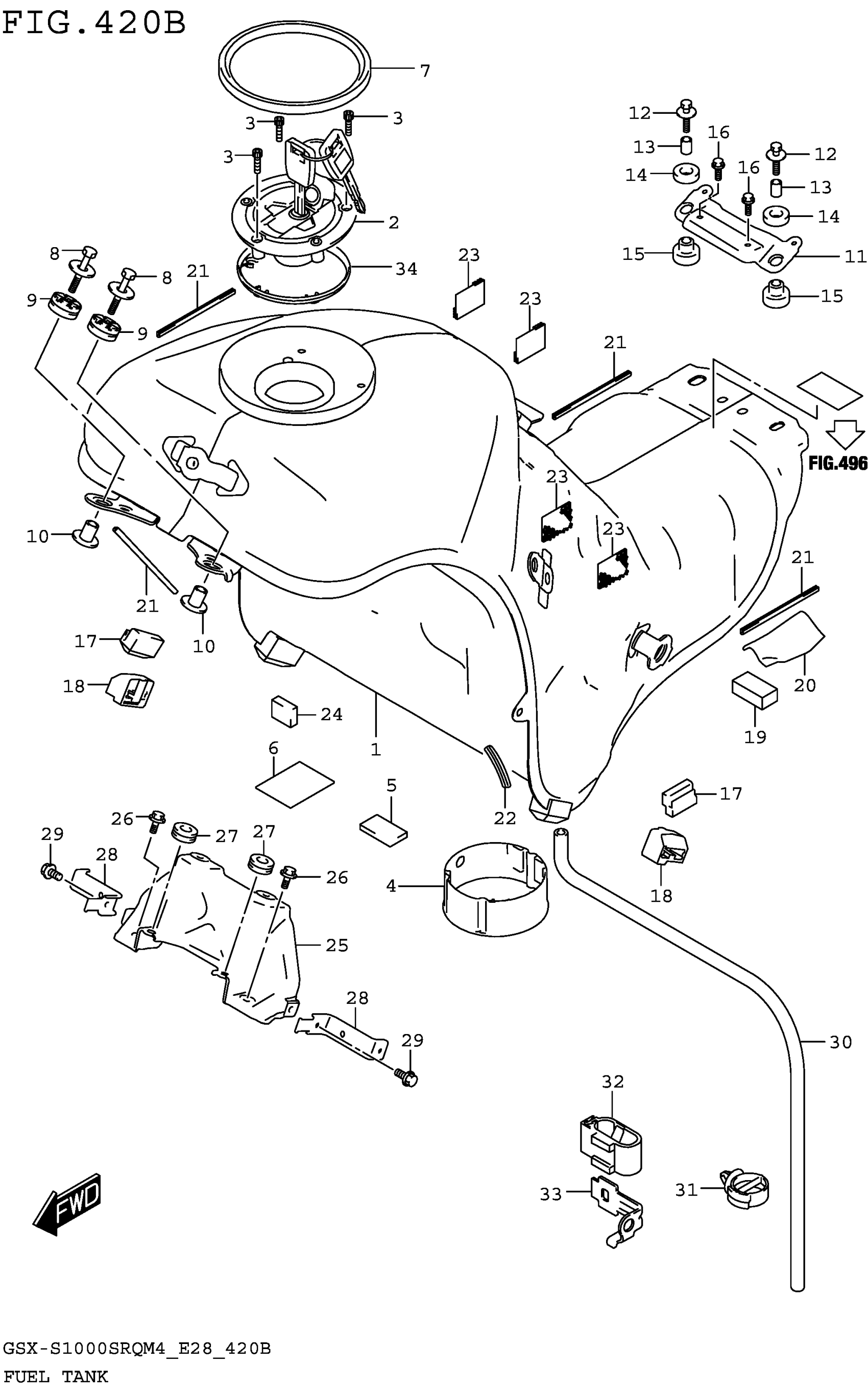 Suzuki GSX-S1000SRQM4 (2024) FUEL TANK (GSX-S1000SRQM4 E33) Diagram