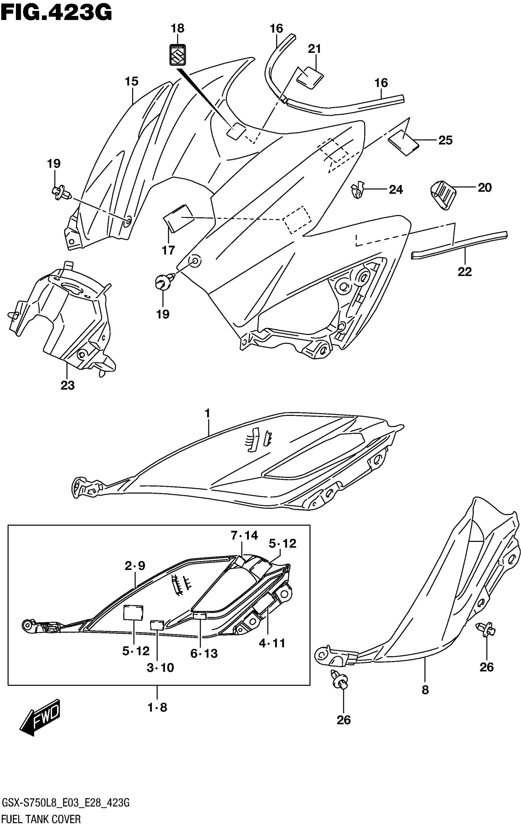 Suzuki GSX-S750AL8 (2018) FUEL TANK COVER (GSX-S750AZL8 E28) Diagram