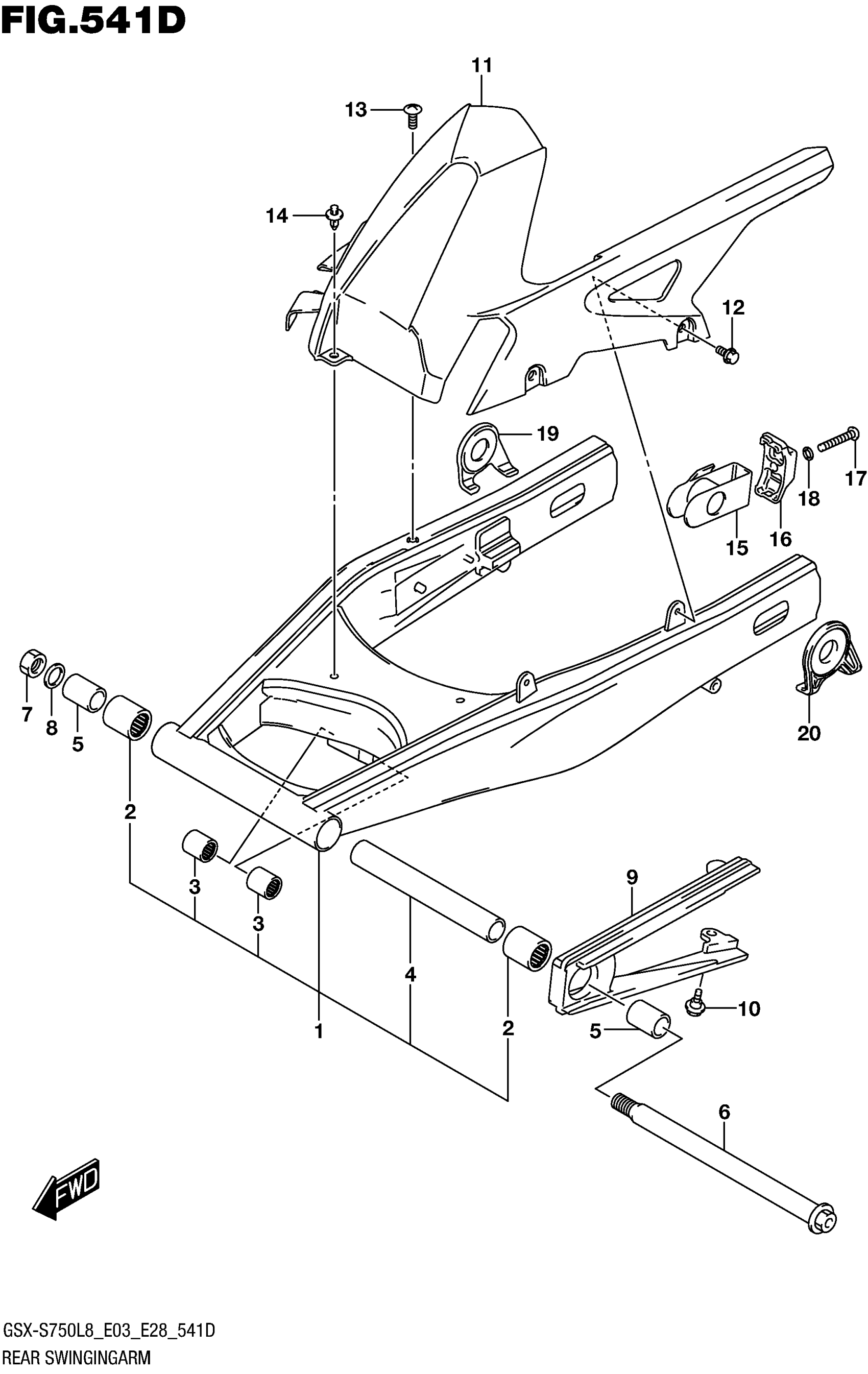 Suzuki GSX-S750AL8 (2018) REAR SWINGINGARM (GSX-S750ZL8 E33) Diagram