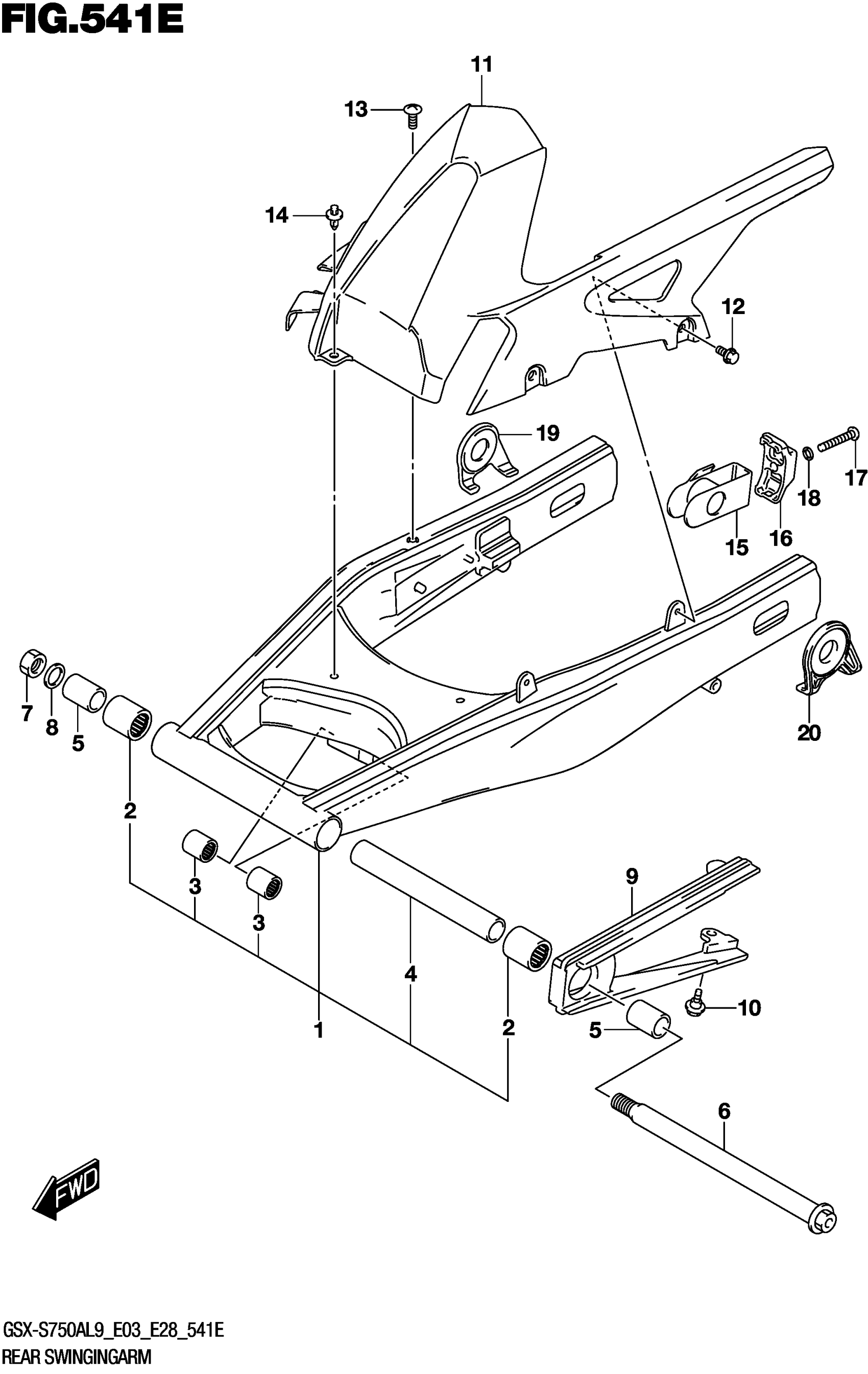 Suzuki GSX-S750AL9 (2019) REAR SWINGINGARM (GSX-S750YAL9 E33) Diagram