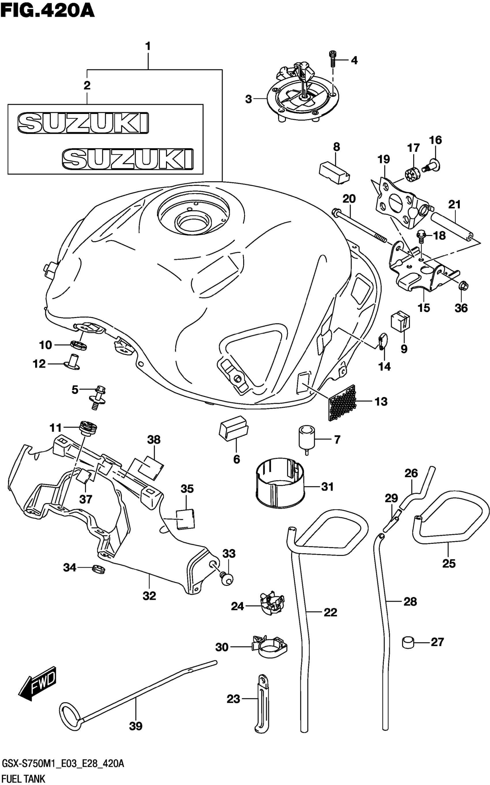 Suzuki GSX-S750AM1 (2021) FUEL TANK (GSX-S750,GSX-S750A:E03,E28) Diagram