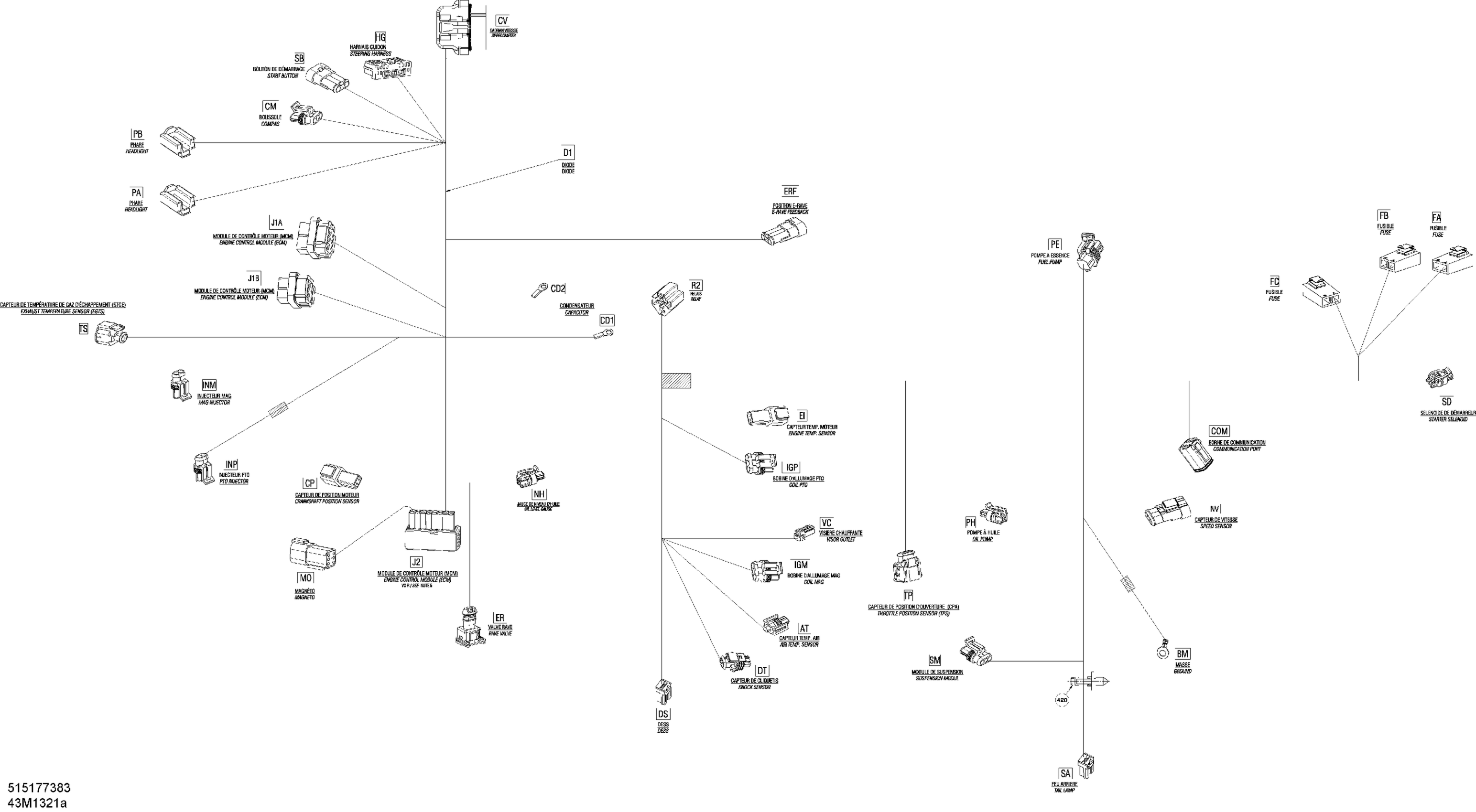 Ski-Doo GSX SE 600HOE, 2013 Electrical Harness Main, 600HOETEC Diagram