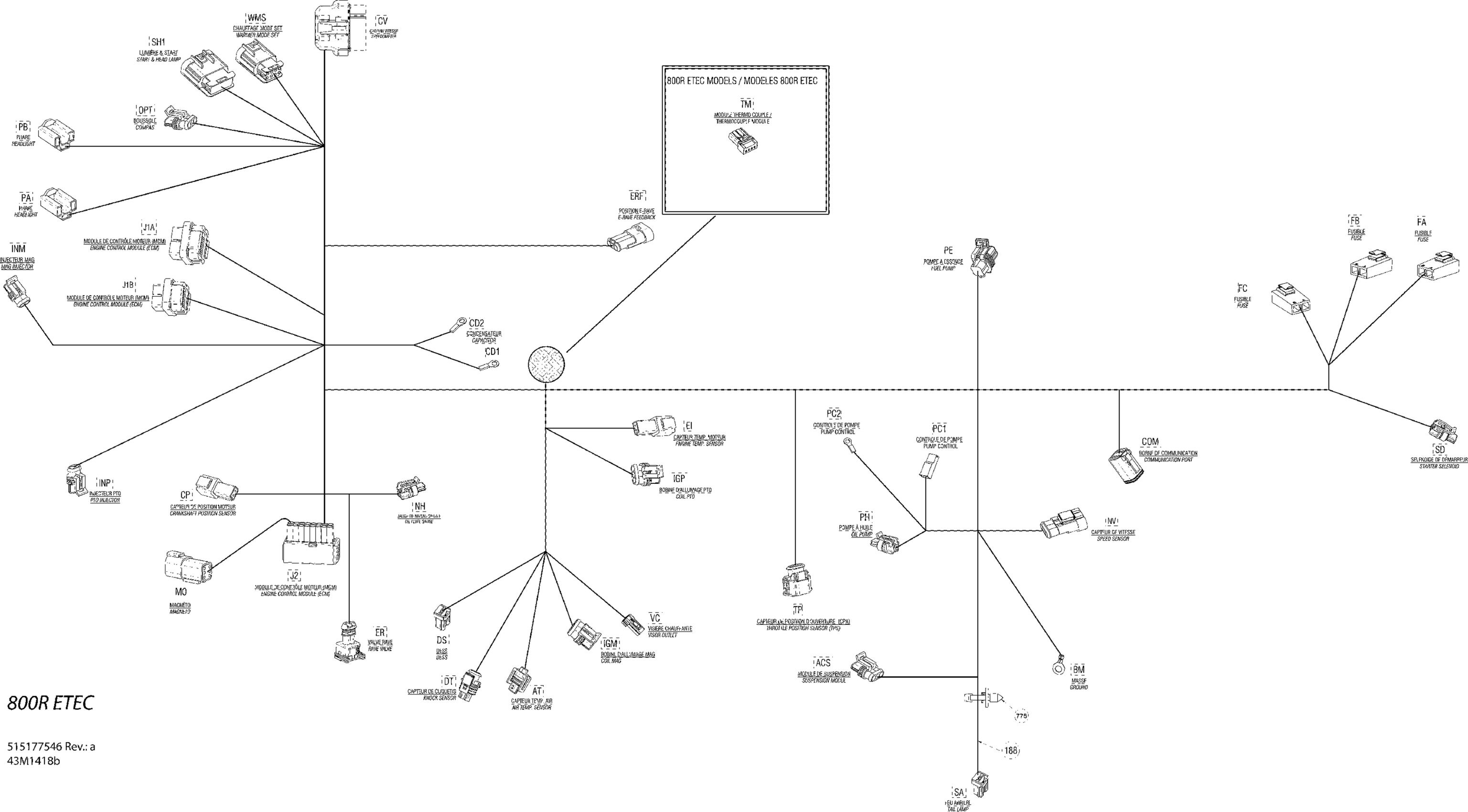 Ski-Doo GSX SE 800RE XR, 2014 Electrical Harness 800R ETEC Diagram