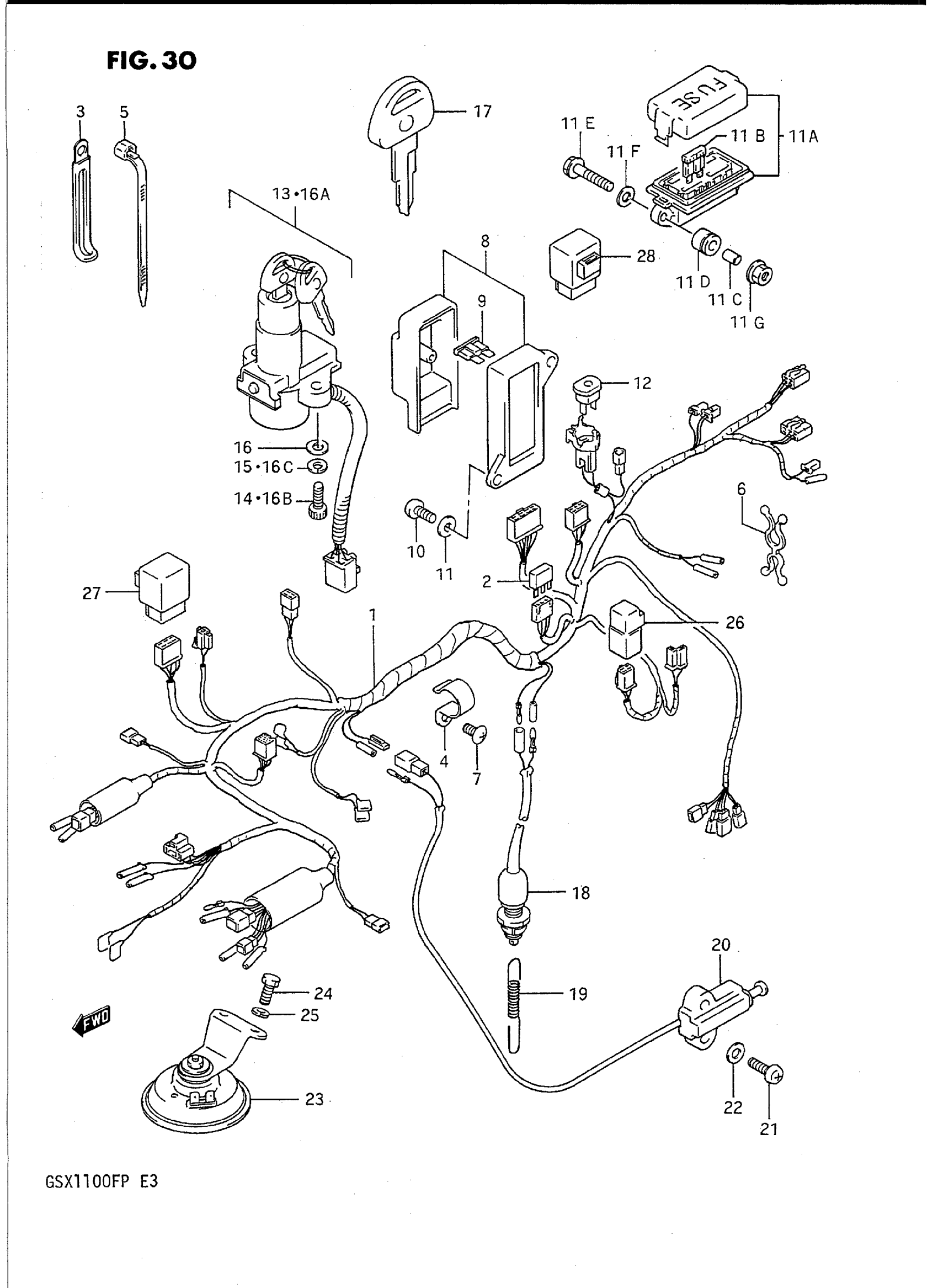 Suzuki GSX1100FP (1993) WIRING HARNESS Diagram