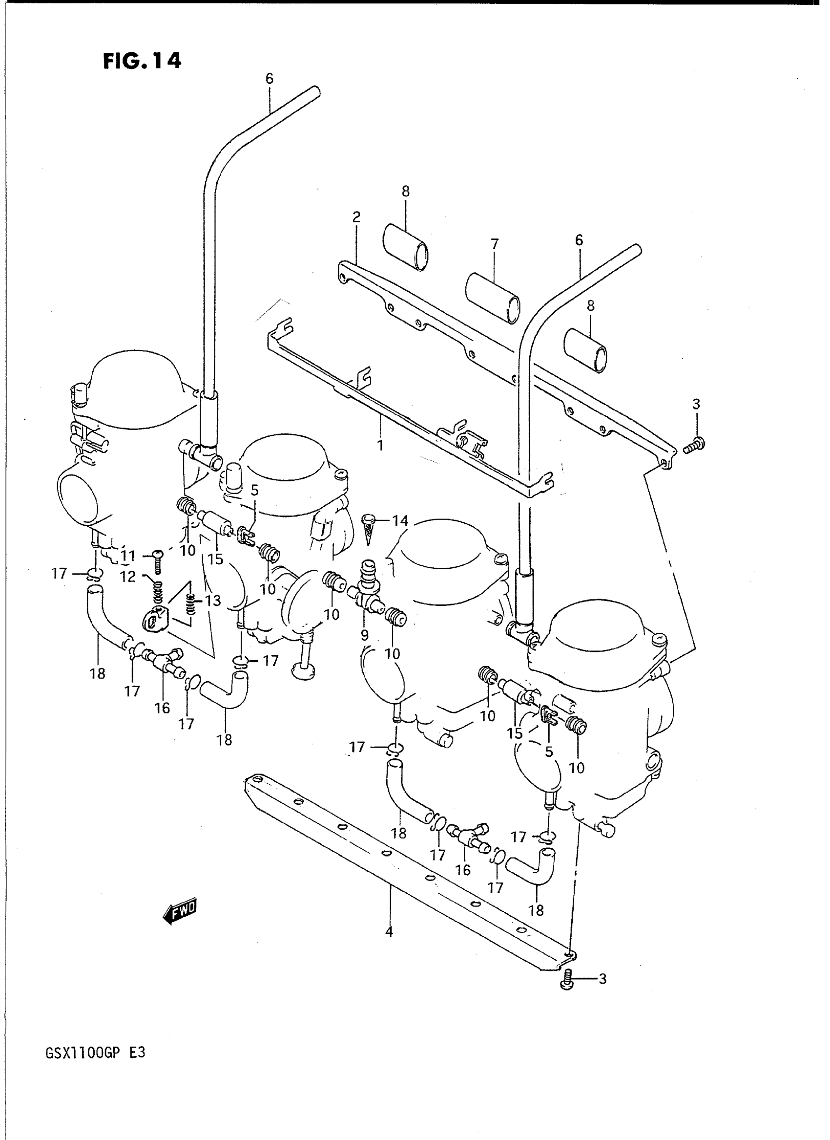 Suzuki GSX1100GP (1993) CARBURETOR FITTINGS Diagram